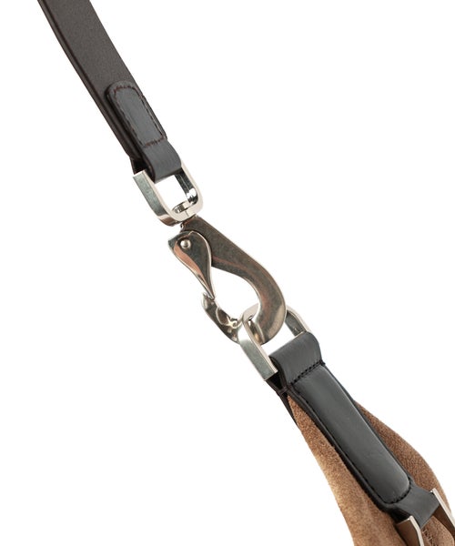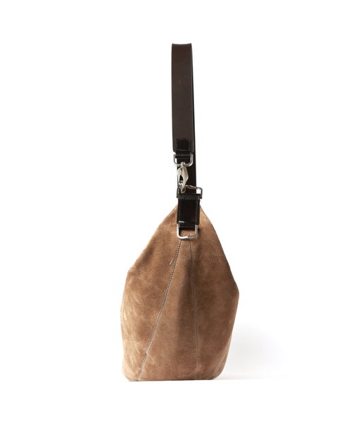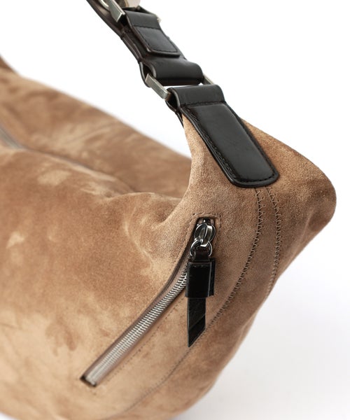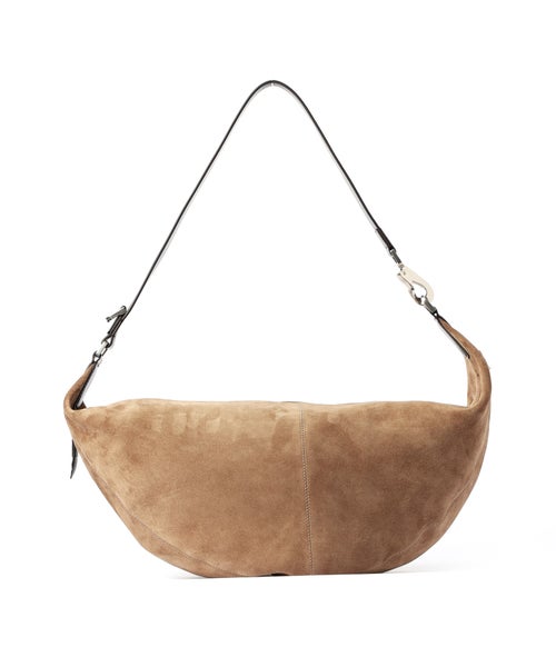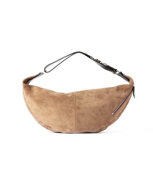 【デザイン】 LEMAIRE(ルメール)の上質なスウェードレザーを使用したQUIVER CLIPバッグ。ソフトで丸みのあるフォルムが身体にやさしく沿い、洗練された印象を演出します。ハンド、ショルダー、クロスボディの3WAY仕様で、シーンに合わせた持ち方が可能。レザーストラップにはメタルバックルとカラビナを備え、取り付ける位置によって長さを調節できる機能性とデザイン性を両立しました。ジップ開閉やサイドポケット、トーンオントーンのジグザグステッチなど細部までこだわった仕上がり。オンオフ問わず活躍する、実用性とエレガンスを兼ね備えた一品です。