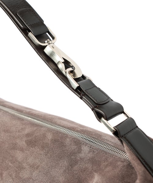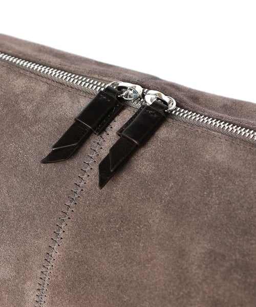 【デザイン】 LEMAIRE(ルメール)の上質なスウェードレザーを使用したQUIVER CLIPバッグ。ソフトで丸みのあるフォルムが身体にやさしく沿い、洗練された印象を演出します。ハンド、ショルダー、クロスボディの3WAY仕様で、シーンに合わせた持ち方が可能。レザーストラップにはメタルバックルとカラビナを備え、取り付ける位置によって長さを調節できる機能性とデザイン性を両立しました。ジップ開閉やサイドポケット、トーンオントーンのジグザグステッチなど細部までこだわった仕上がり。オンオフ問わず活躍する、実用性とエレガンスを兼ね備えた一品です。