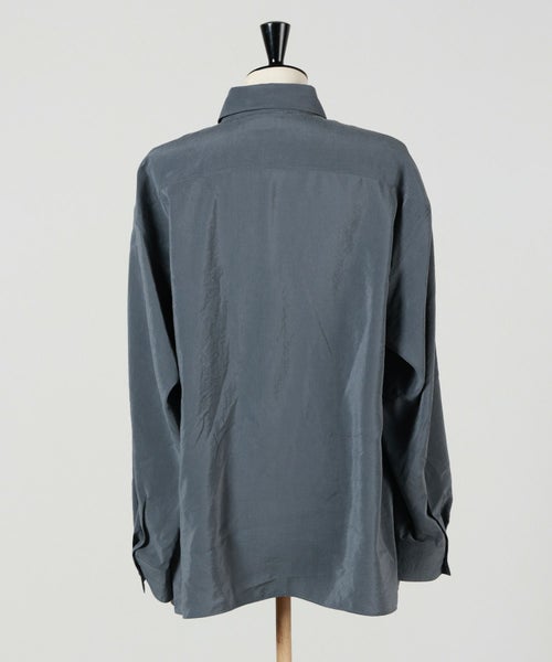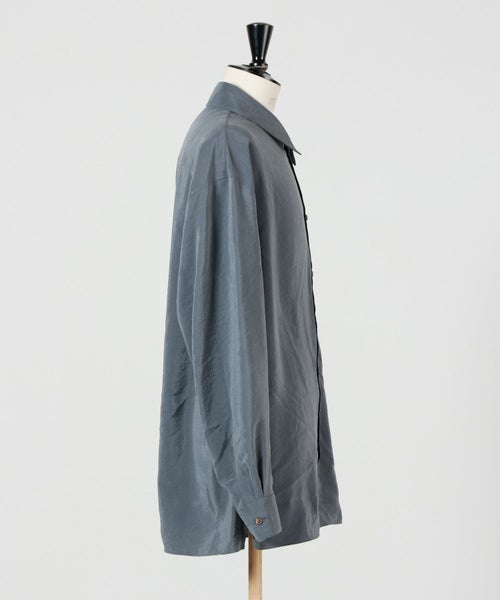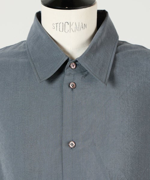 【素材】 シルク混の「ドライシルク」素材を採用。シルク特有の上品な光沢と、ドライなタッチを兼ね備えた生地で、しっとりとした柔らかさがありながらも、程よいハリ感が特徴です。動くたびに繊細な陰影が生まれ、立体的な表情を演出。軽やかで通気性が良く、オールシーズン快適な着心地を提供します。ナイロンがブレンドされていることで耐久性が加わり、デイリーにも取り入れやすい一着に仕上がっています。