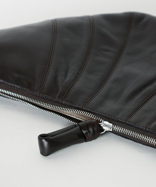 【デザイン】 LEMAIRE(ルメール)のアイコンバッグ「クロワッサン」。ミディアム クロワッサンは、しなやかでありながら耐久性のある柔らかいラム ナッパ レザーで作られています。滑らかな表面が手触りを良くし、バッグのカーブの耐久性を高めています。同名のペストリーの形にインスピレーションを得たデザインは、トップステッチのカットアウトを組み合わせて、スタイルと機能性を融合しています。