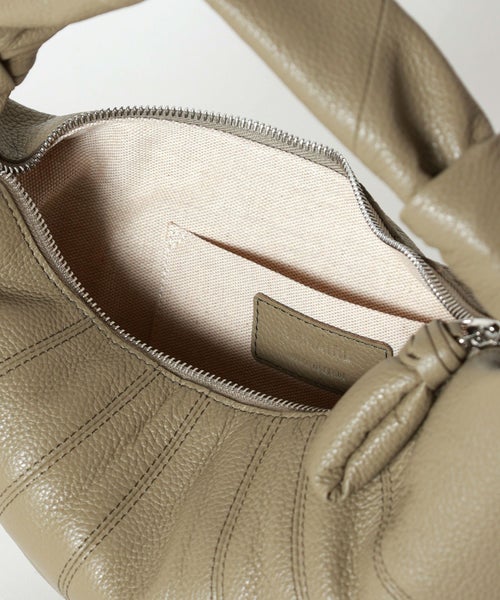 サイドには特徴的なノット仕上げを施し、細部までこだわり抜いたデザインに。ファスナー部分には同素材のレザープル付きで、開閉もスムーズ。バッグ正面にはLEMAIREのロゴがエンボス加工され、控えめながらも洗練された印象を演出します。