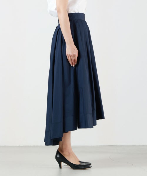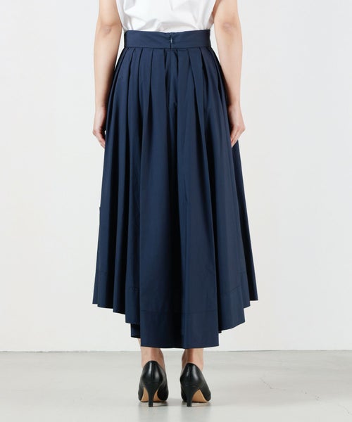 【デザイン】MADISONBLUE(マディソンブルー)のクラシックなタックボリュームスカート。ドレーピングで作り上げた美しく華やかなシルエットで、後ろ下がりのデザインもドラマティック。ボリューム感はありながらもサイドスリットを入れているので足さばきも良く、カジュアルなコーディネートにも対応。J BRADLEY SHIRTと同じコットンタイプライターで仕立てています。J BRADLEY SHIRTとのセットアップで着こなせる、軽やかな大人のボリュームスカートです。