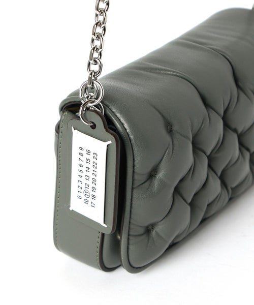 【デザイン】Maison Margiela(メゾンマルジェラ)のバッグ。「グラム スラム」シリーズのミニショルダーバッグは、フランスの伝統的な手縫いキルト「マテラッセ」スタイルを模した独特のキルティングデザインが特徴です。刺繍入りナッパレザーを使用し、上質感とユニークさを両立。取り外し可能なチェーンストラップで、肩掛けからクラッチバッグにもなる2WAY仕様でスタイリングに合わせてアレンジができるのも魅力的。チェーンに付いてるナンバリングロゴのチャームがブランドの象徴的な存在感をプラスしてくれるバッグです。
