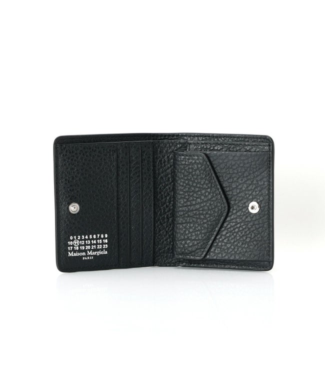 【デザイン】Maison Margiela(メゾンマルジェラ)の二つ折り財布。外側に施されたホワイトステッチがアイコニックなスナップ開閉式のデザイン。内側には、エンベロープスタイルのコインパースと、カードと紙幣用スロットがあります。内側のMaison Margielaのナンバーロゴもアクセントに。メンズ、レディースどちらもお使いいただける財布です。