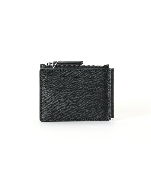 【デザイン】 Maison Margiela(メゾンマルジェラ)のマネークリップウォレット。グレイニーレザー製。マネークリップとファスナー付きのコインセクション、3つのカードスロットが備わっています。内側にはロゴが配されています。通常のファッションブランドのラベルとは対照的なメゾンマルジェラのシグネチャーの白い4ステッチがあしらわれています。