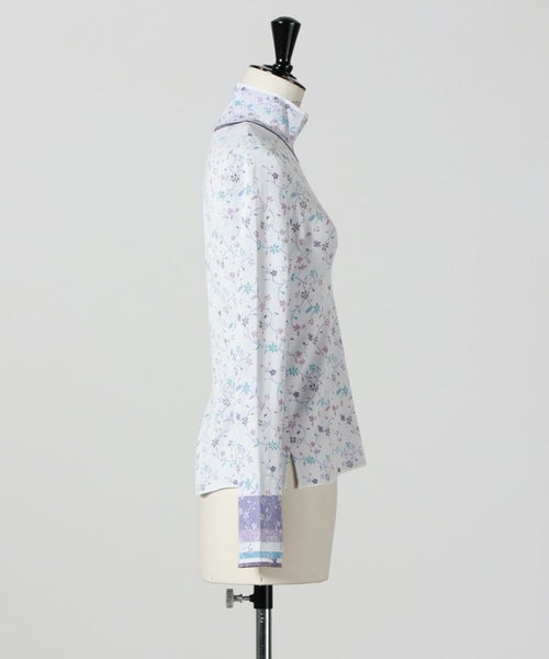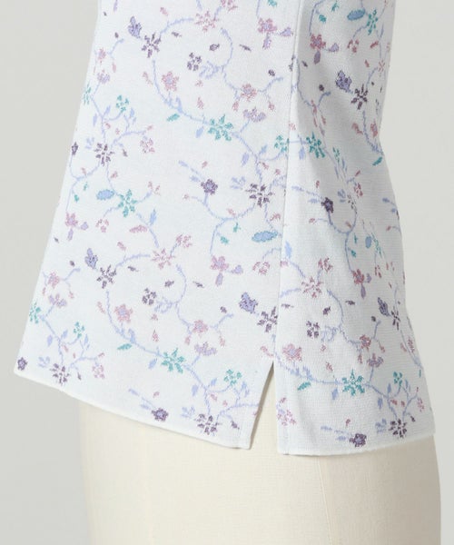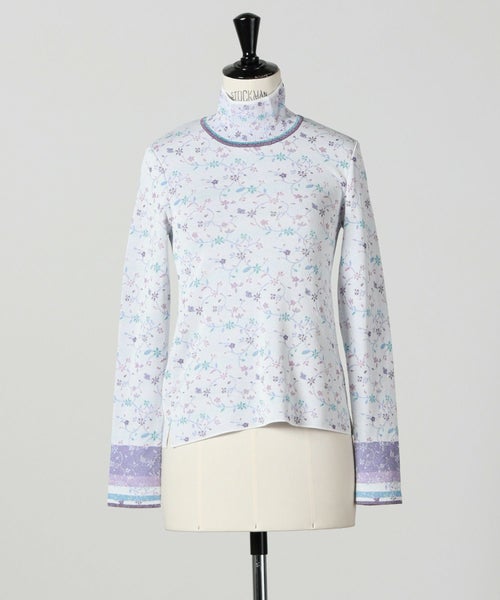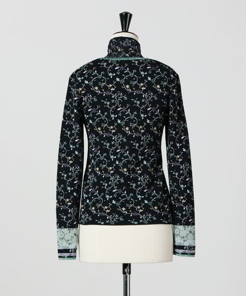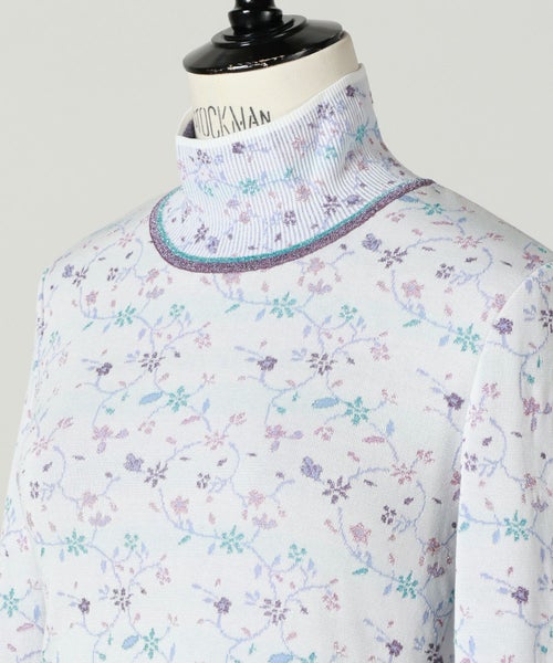 【デザイン】 Mame Kurogouchi(マメクロゴウチ)のニットトップス。日本の古布や西洋のガラス作品にも見られる蔦柄を表現しています。ペールトーンの配色とラメ糸を用いた総柄に、ハイネックのコンパクトなシルエットのバランスが愛らしい1着です。