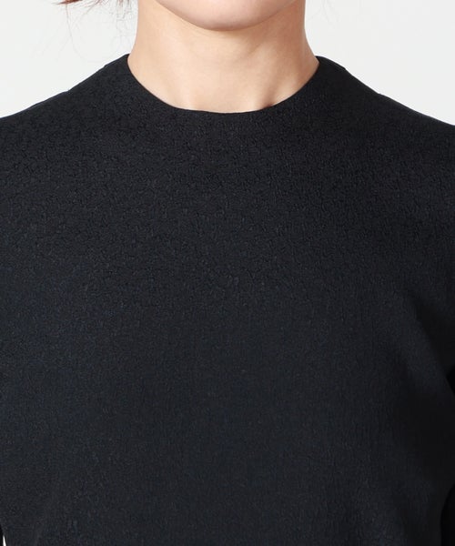 【素材】 レーヨン、アセテート、ポリエステルをブレンドしたジャカード素材を使用。独特なシボ感のある凹凸が肌離れの良さを生み、さらりとした快適な着心地を実現します。レーヨンとアセテートによるほのかな光沢と落ち感が、上品でしなやかな印象をプラス。軽やかさと適度なハリを兼ね備え、動きに合わせて美しく揺れる素材感が魅力です。