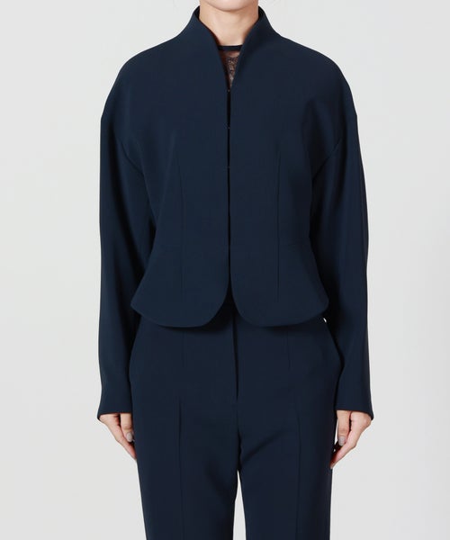 【Mame Kurogouchi(マメ クロゴウチ)】 Triacetate Polyester Collarless Short Jacket