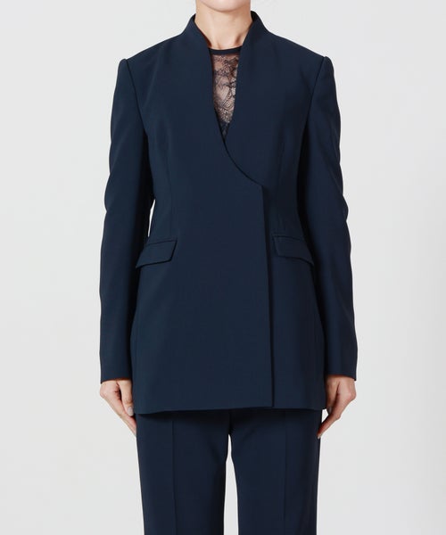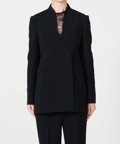 【Mame Kurogouchi(マメ クロゴウチ)】 Triacetate Polyester Collarless Double Breasted Suit Jacket