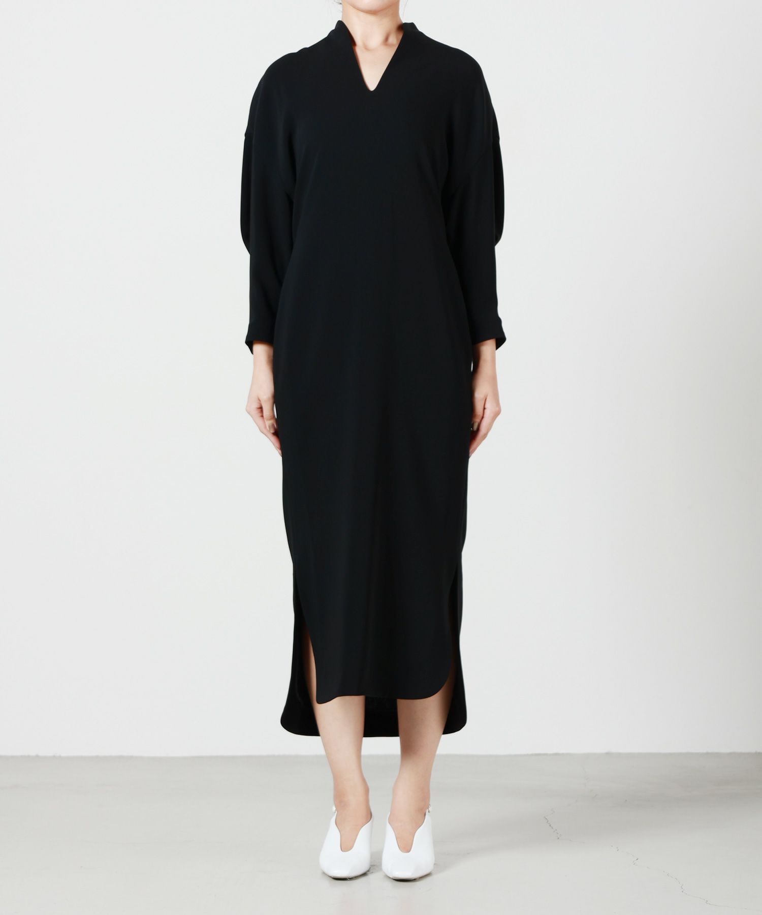 【Mame Kurogouchi(マメ クロゴウチ)】 Velour Jersey High Neck Dress
