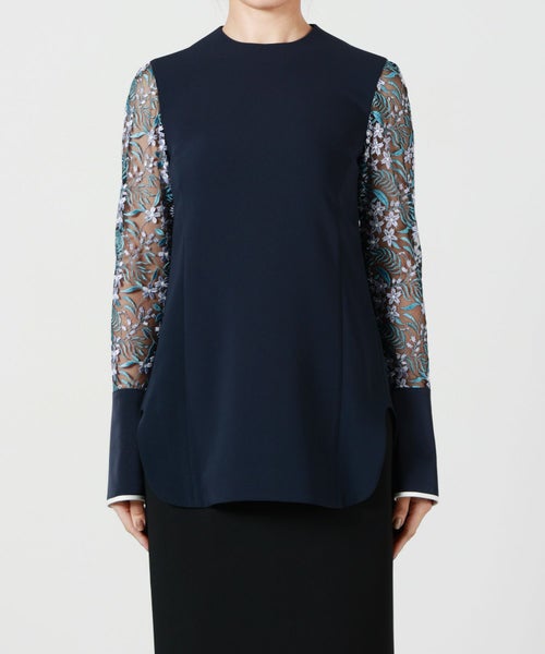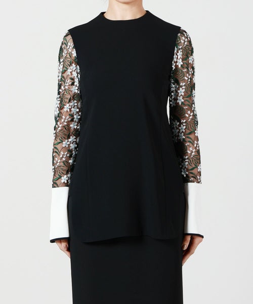 【マイベスト MameKurogouchi(マメクロゴウチ) vol.41】Floral Lace-Sleeve Classic Top #25SS