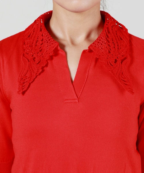 おすすめポイント : 1枚で様になるレディなデザインが目を惹きます。マメならではなレース襟のディテールをニットに落とし込むことで、日常的に楽しめるアイテムです。