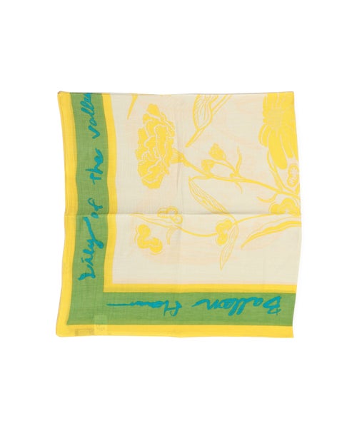 【デザイン】manipuri(マニプリ)のストール。manipuri特注のインドストールはすべてインドで織られています。フローラルモチーフとロゴデザインがあしらわれた色鮮やかな一枚。使うほどに肌になじみ、生地には独特の落ち感が出ます。
