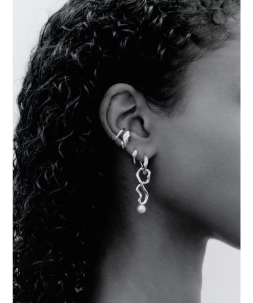 【デザイン】2連のようなデザインのMARIA BLACK(マリアブラック)のシルバーのイヤーカフ。有機的なテクスチャーが特徴的なデザイン。シンプルながらも顔周りに華やかなアクセントをプラスしてくれます。ピアスやイヤリングとの重ね付もオススメです。