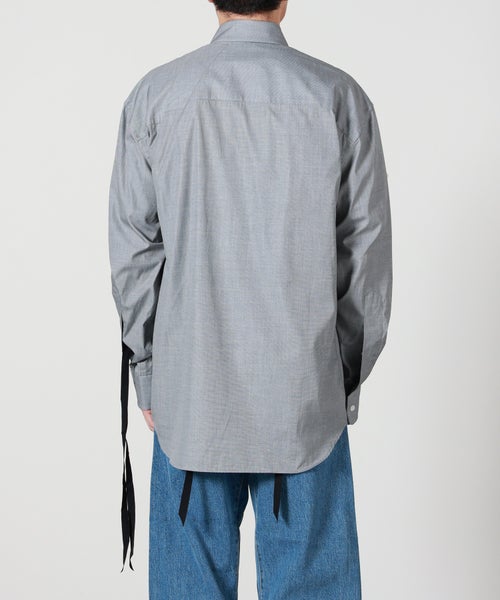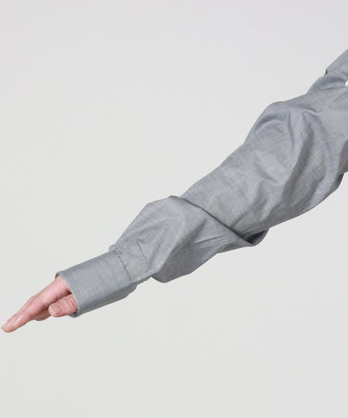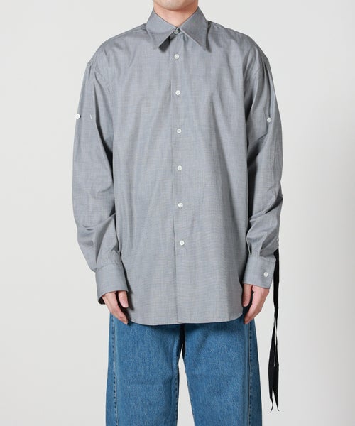 【デザイン】MARINA YEE(マリナ イー)のシャツ。ミニマルながらも個性を感じさせる一枚。ドロップショルダーがリラックスした印象を与えつつ、袖にボタンを配置し、シルエットの変化とデザイン性を両立。グレーカラーが落ち着きのある都会的な印象を演出し、スタイリングに洗練されたニュアンスを加えてくれます。