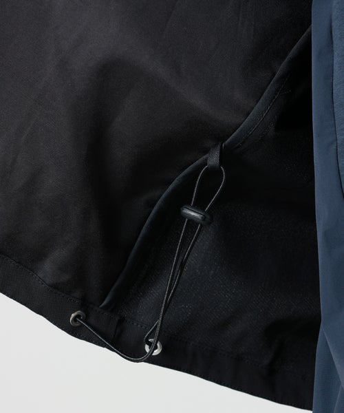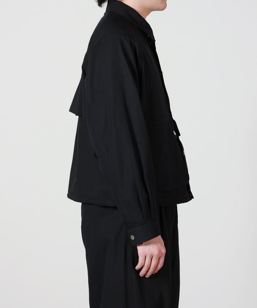 【デザイン】MARKAWARE(マーカウェア)のブルゾン。ハンティングジャケットのディテールを、ショート丈のブルゾンへ落とし込んだ一着。ショートブルゾンの特性を活かし、身幅にゆとりを持たせた丸みのあるシルエットに設計。フロントにはマチ付きフラップポケットを配し、さらに横から手を入れられるハンドウォーマーポケットも配置。機能性と立体感を兼ね備えたデザインです。裾にはドローコードを通し、ブラウジングによるシルエットの変化も楽しめます。襟元にはチンタブを備え、襟を立ててスタンドカラーとして着用することも可能です。夏場でも軽やかに羽織れる、機能性とファッション性を両立したブルゾンです。