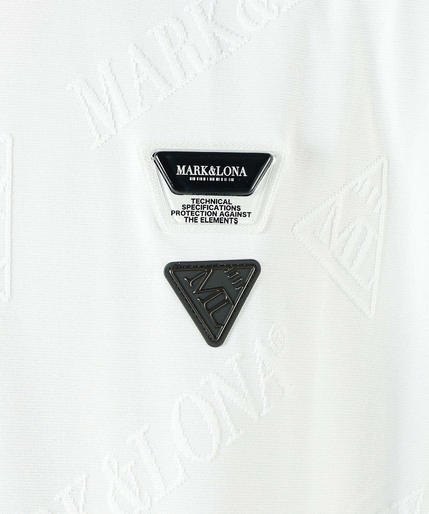 【デザイン】 MARK&LONA CODE(マークアンドロナコード)のパンツ。ブランドロゴが浮き出るような立体的ジャカード素材のモックネックTシャツです。身頃と肩まわりにゆとりを持たせつつ、袖をシャープに仕上げた洗練されたスタイルで着用して頂けます。さりげないロゴの光沢感とさらっとした着心地が魅力です。