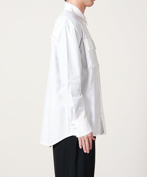 【デザイン】MARNI(マルニ)のシャツ。オーガニックコットンポプリンを使用した長袖シャツ。両胸にはフラップ付きのチェストポケットを配置し、端正な襟元とフロントボタン仕様でクラシックなバランスに仕上げています。左胸ポケットのフラップ裏からさりげなく覗くマルニロゴが、控えめながらも印象的なアクセントに。ミニマルな佇まいの中に、ブランドらしい遊び心を効かせた一枚です。ベーシックでありながらも、ディテールで差がつくデザインは、きれいめからカジュアルまで幅広いスタイリングに対応。ジャケットのインナーとしても、一枚着としても洗練された存在感を放ちます。