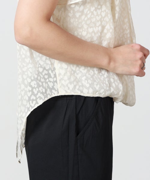 【デザイン】Miki MIALY(ミキミアリ)のブラウス。軽やかな落ち感を活かし、布の動きで自然な立体感を生みシルエットを美しく見せるデザインです。平面的な布を立体的に構築するのが得意なブランドらしいドレープの出る布使いによるこなれ感が魅力です。