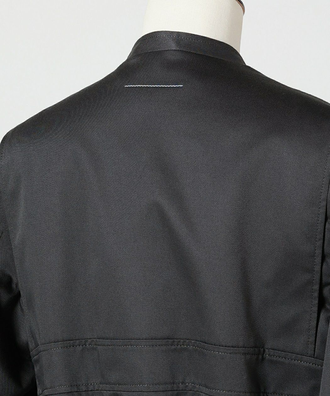 【デザイン】 MM6 Maison Margiela(エムエムシックス メゾン マルジェラ)のジャケット。クロップド丈が特徴のスタイルを追求した一着です。幅広のキルティングウエストバンドが、独特なシルエットを作り出し、全体のラインを引き締めます。スタンドカラーとジップフロントはシンプルながらもクリーンで、ミニマルな美しさを保ちます。さらに、ジップ付きの長めの袖がシャープでモダンな印象を与え、全体に精悍な表情をプラス。バックには、MM6の象徴的な白いステッチが施されており、ブランドのアイデンティティをさりげなく表現しています。