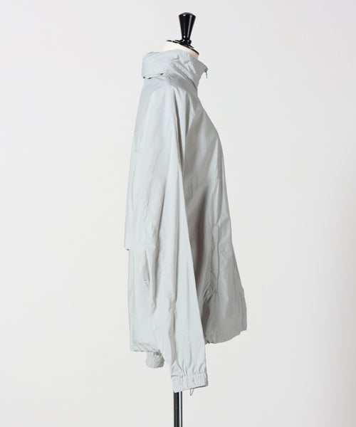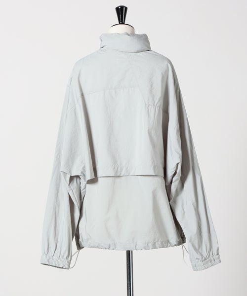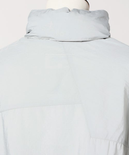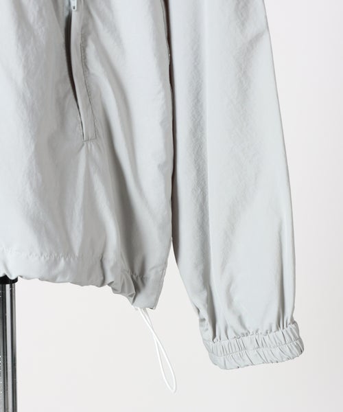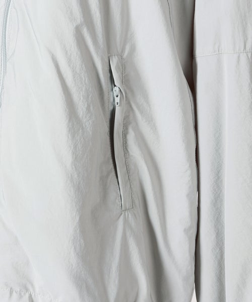 【素材】 表地にはシャリ感のある薄手ナイロンを使用しており、風をしっかりとブロックしながらも軽やかな着心地を提供します。裏地はポリエステルで、滑らかな肌触りが特徴。ナイロン素材特有のツヤ感と質感が、スポーティーな印象を高め、見た目にも機能性にも優れた一枚。伸縮性のある袖口と裾が、フィット感を高め、より快適な着用感を実現します。