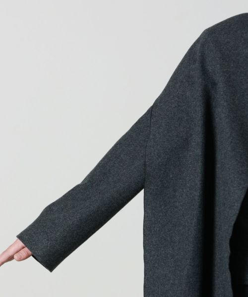 【素材】 ウール&ナイロン混紡素材で、温かみと耐久性、軽やかさを兼ね備えています。その他繊維が混紡されることで、適度なハリとシルキーな手触りを実現。裏地には滑らかなビスコースを採用し、肌ざわりの良さと快適な着心地を追求。機能性と上質感を両立した素材構成です。