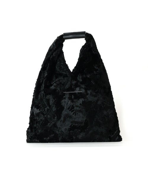 【デザイン】MM6のジャパニーズバッグ。フェイクファー素材のJapaneseバッグです。2009年の秋冬コレクションのアイテムとして発表されたJapaneseバッグは、発表以来、MM6を代表する象徴的なアクセサリーとなっています。日本の伝統的な折り紙にインスパイアされた三角形のフォルムが特徴です。 タイムレスなアクセサリーであり続けるため、Japaneseバッグは毎シーズン、サイズや素材を変えアップデートされています。
