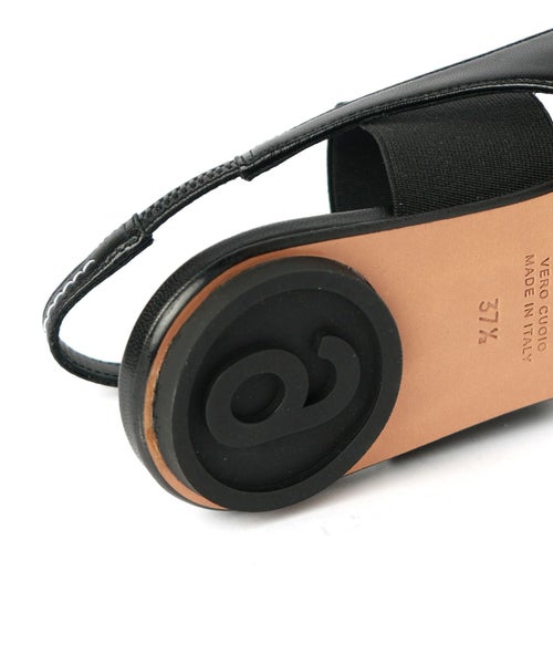 【デザイン】MM6 Maison Margiela(エムエムシックス メゾン マルジェラ)の靴。 ブランドを象徴するアナトミックトゥを取り入れたスリングバックシューズです。 オープントゥのシルエットは柔らかな羊革で仕立てられ、足元に彫刻的な印象を与えます。 幅広の伸縮性ストラップには、ニューメリックロゴアートワークが刻印され、アクセントでありながらフィット感を高めます。 低めの円筒形ヒールがさりげなく高さを加え、歩きやすさとスタイルアップを両立。 バックにはブランドを象徴する1本の白いステッチを施し、脱構築的でモードなデザインを演出しています。 スカートやパンツスタイルに合わせやすく、洗練された大人の足元を完成させます。