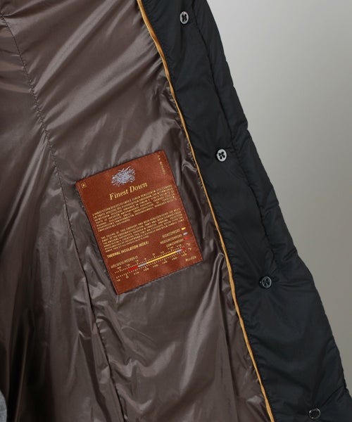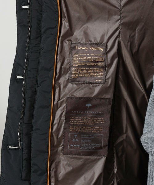 【素材】 上質を極めた異素材使いが魅力。しなやかさとほどよい伸縮性を両立。マットすぎず、光沢が上品に映えるため、見た目にリッチな印象を与えます。軽やかな着心地ながら、真冬の寒さにも安心の保温性を確保。極寒地での使用も想定された機能性の高さが魅力です。 袖通しもスムーズ。特筆すべきは、フード部分に贅沢にあしらわれたレッキスラビットのファー。手に触れるたびに感じるそのしっとりとした柔らかさは、思わずうっとりするほどの上質感です。さらに、部分使いされた牛革が全体を引き締め、高級感を一層引き立てています。