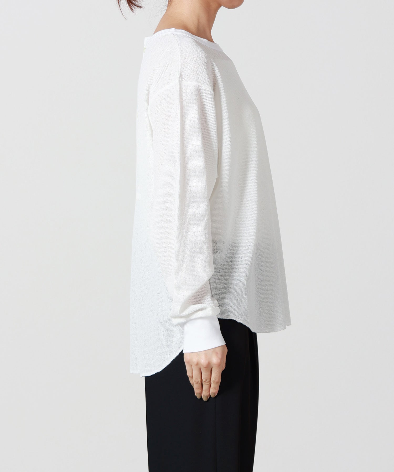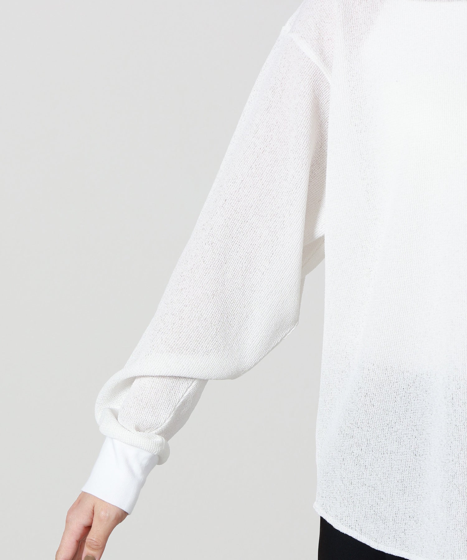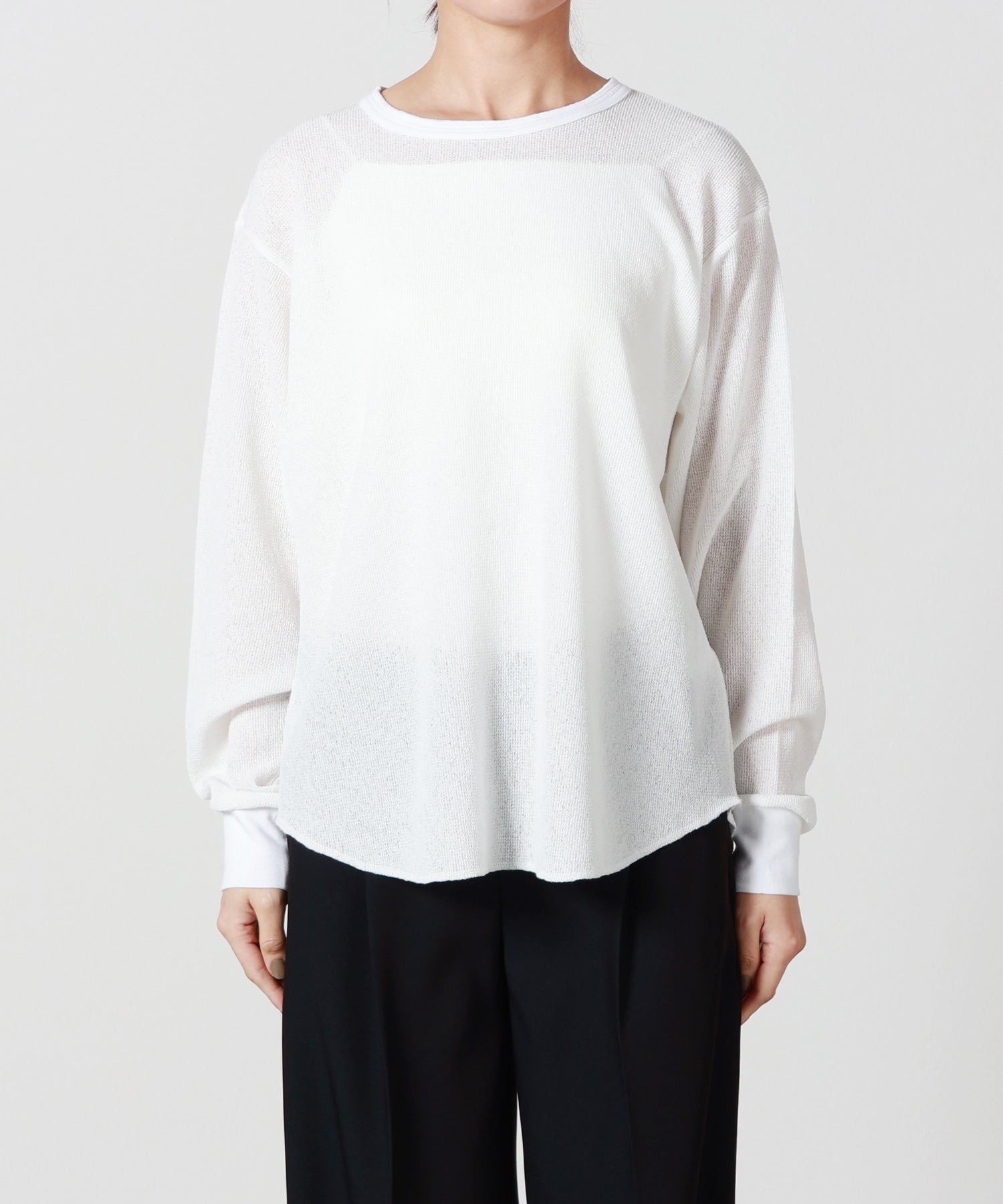ハニカムサーマル×ニットリブラウンドヘムプルオーバー