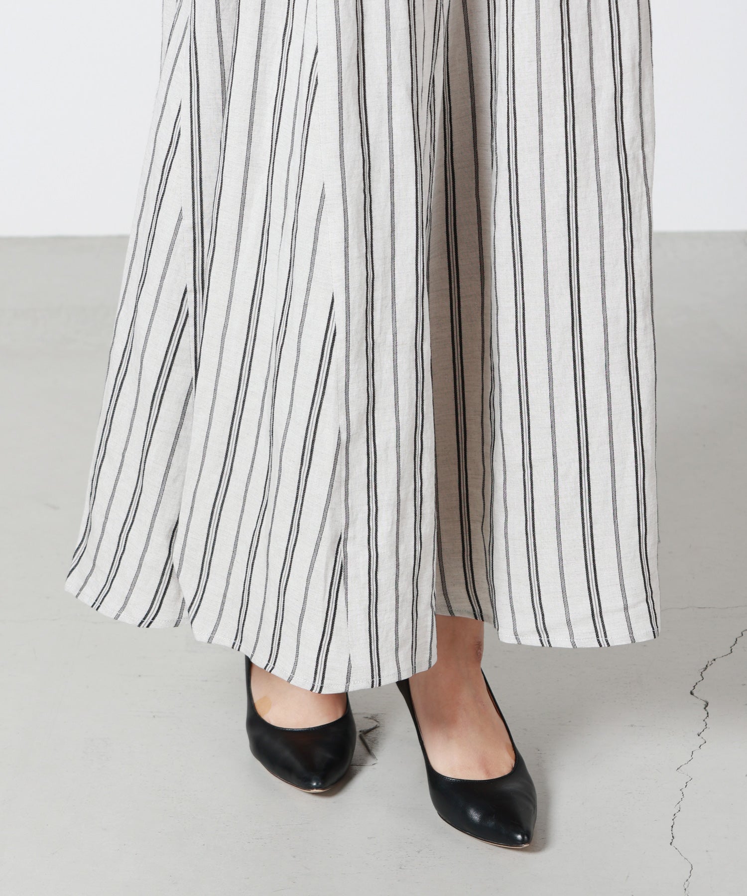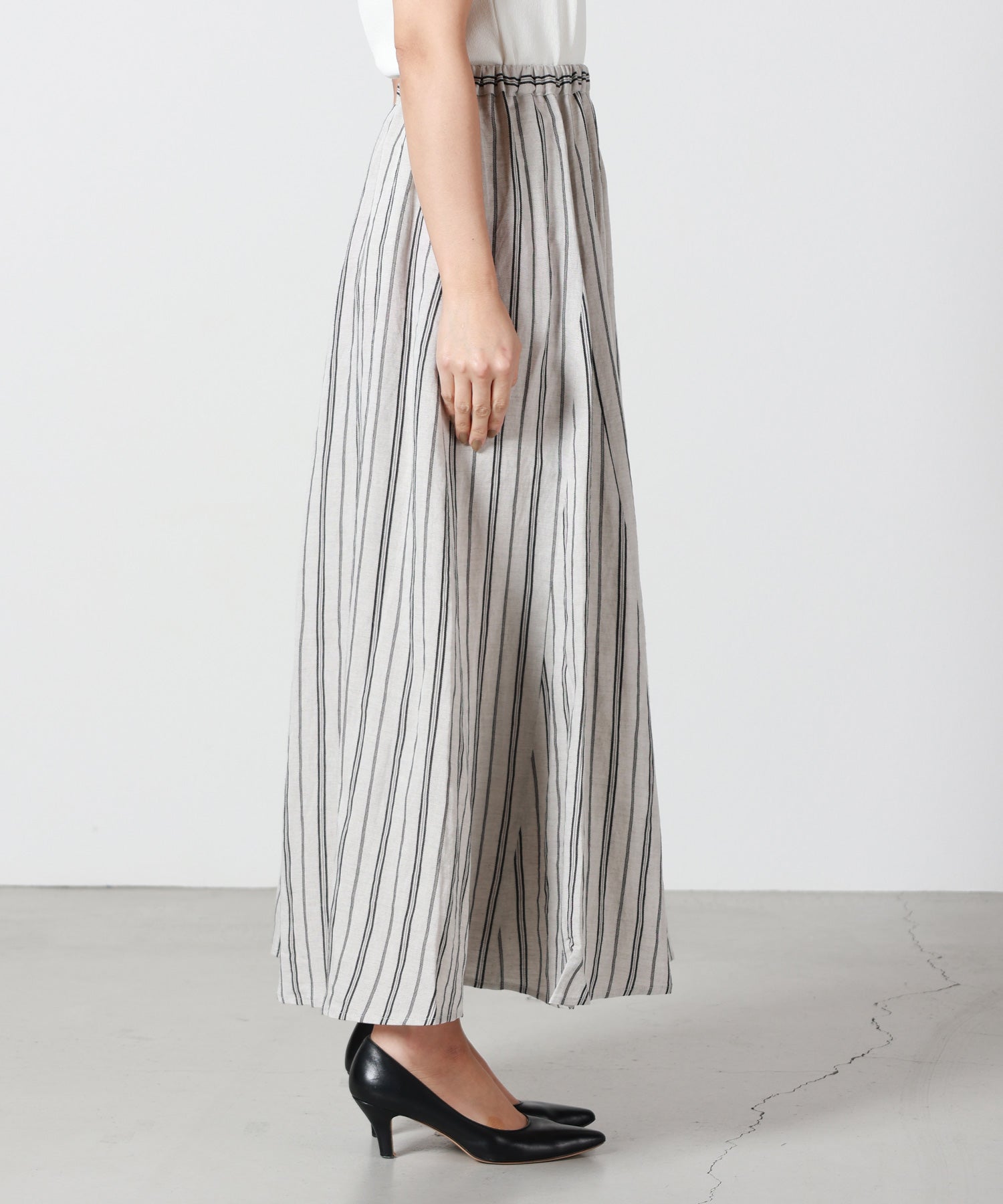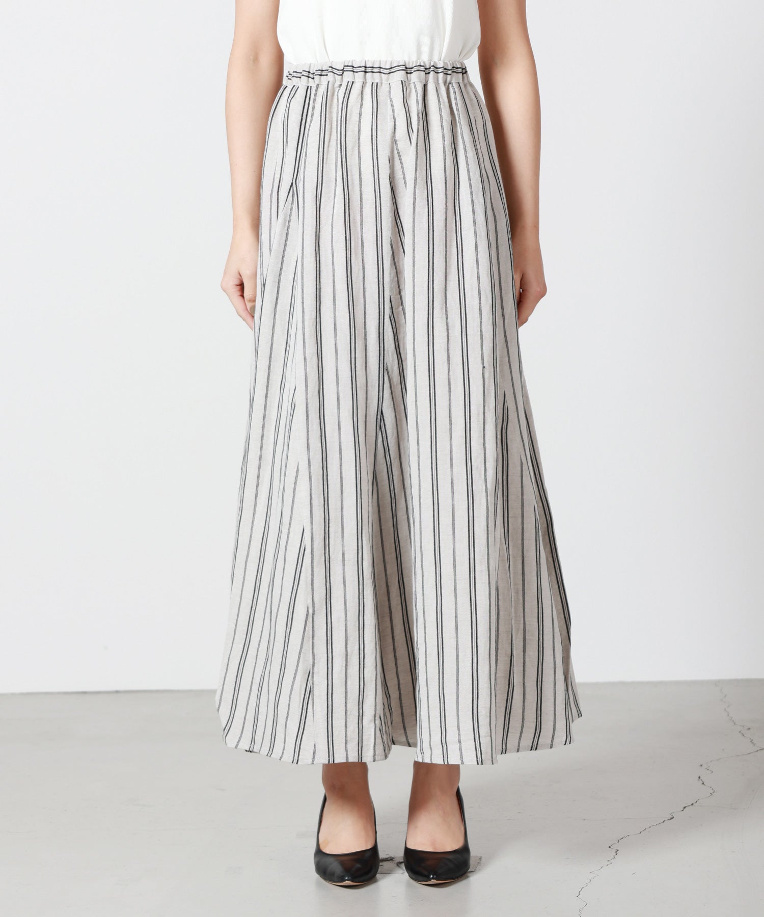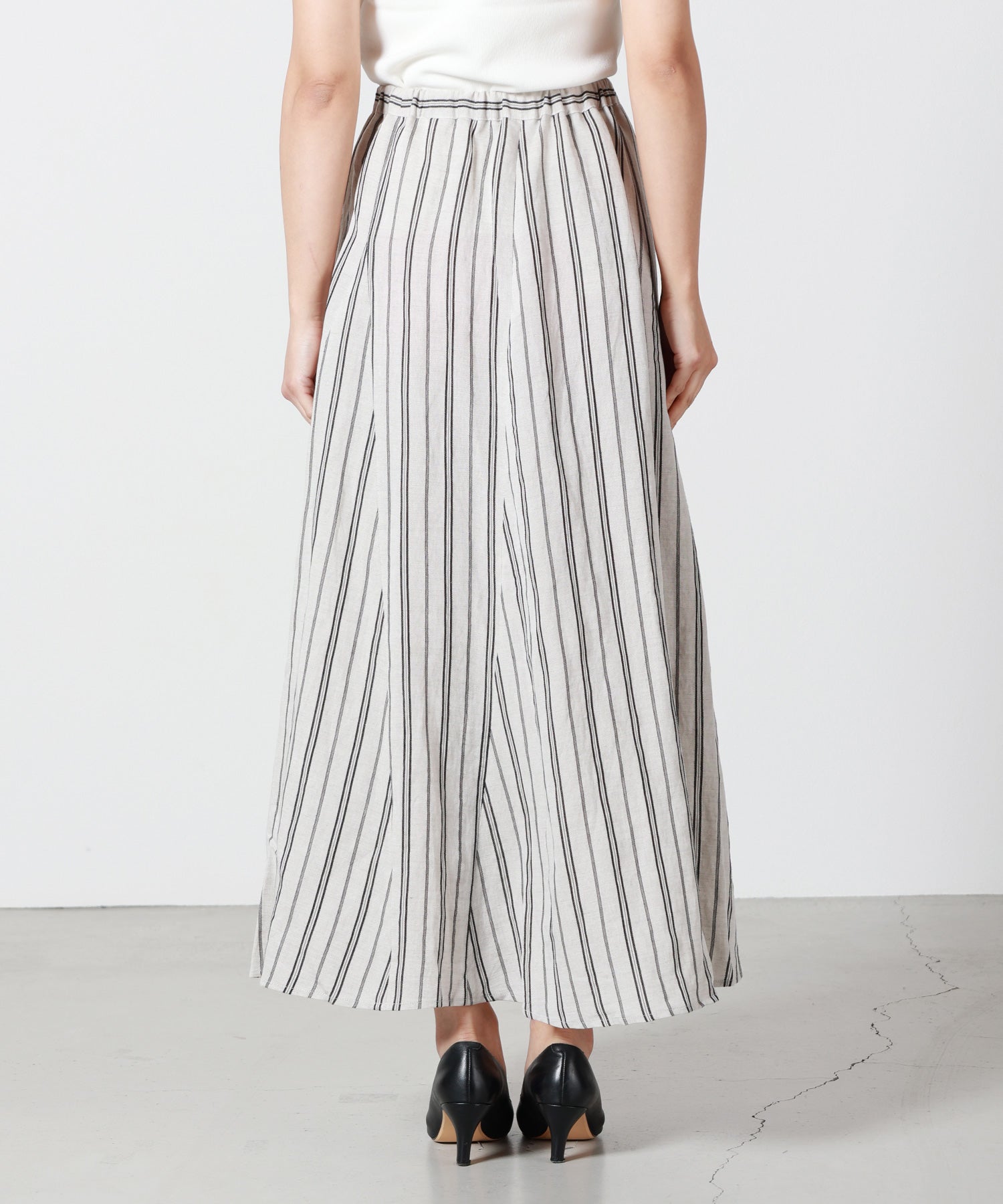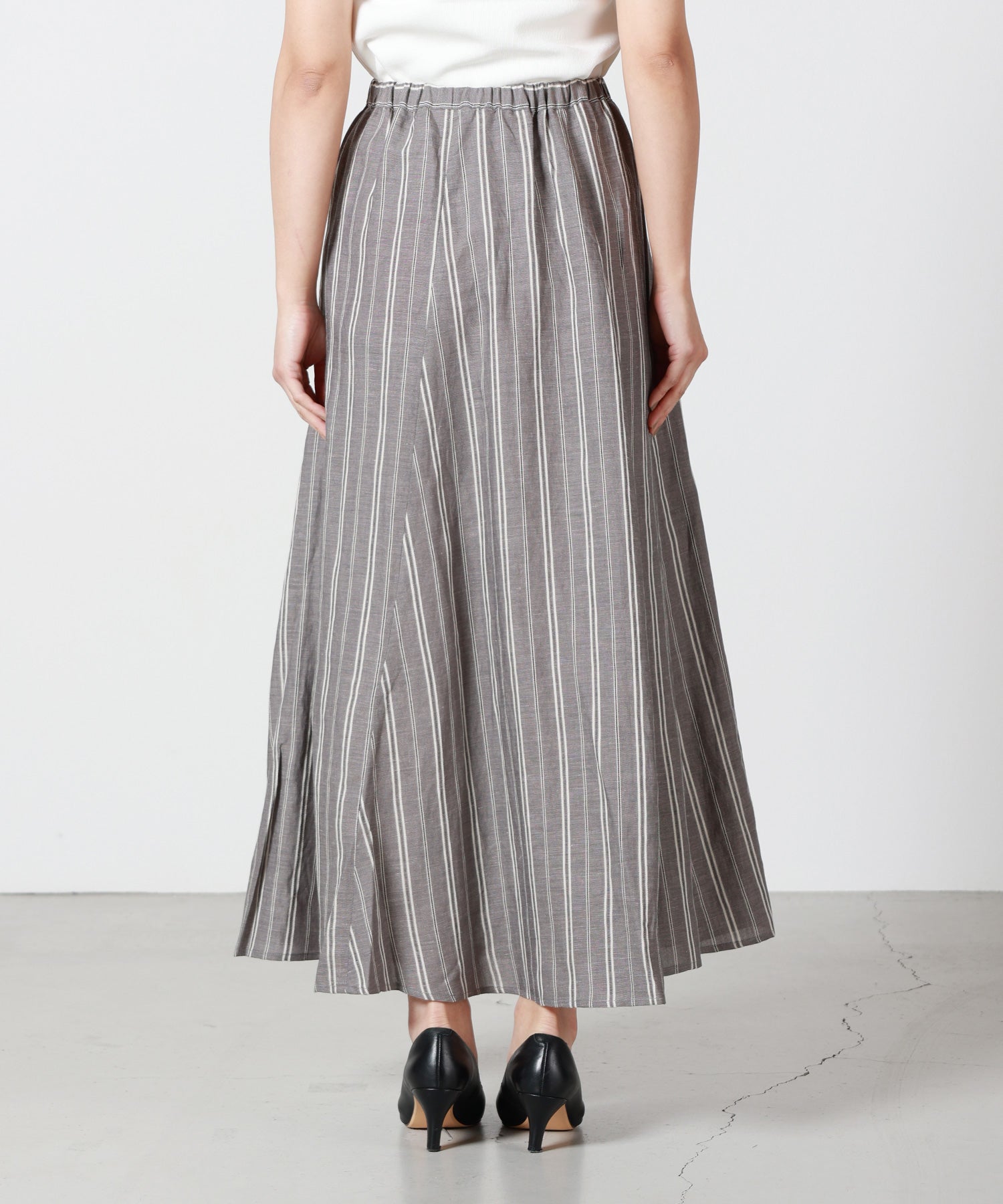 【Munich(ミューニック)】 リネンビスコースマルチストライプフレアスカート