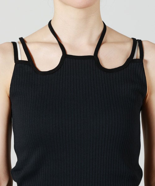【デザイン】MURRAL(ミューラル)のトップス。ブランド定番のIvyシリーズから登場したホルターネックデザインのタンクトップです。首元のバインダーは後ろで結ぶほか、チョーカーのように巻き付けるなどアレンジが可能で、スタイリングに個性と華やかさをプラスします。コンパクトなシルエットが女性らしいラインを引き立て、単品使いはもちろん、ジャケットやシャツのインナーとしても活躍します。