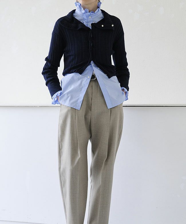 デザイナー:深山拓也(みやまたくや)/上島朋子(かみじまともこ)2000年に創立された日本のブランド。ベーシック×デザイナーズをベースとして、上質な素材とハンドクラフトテクニックを用い、新しいバランスやシルエットの中に、美しさと強さを持った服作りを目指している。近年では、ビジネスシーンにおける自己表現が出来るアイテム、日常生活で着用出来るクリエーションを提案している。