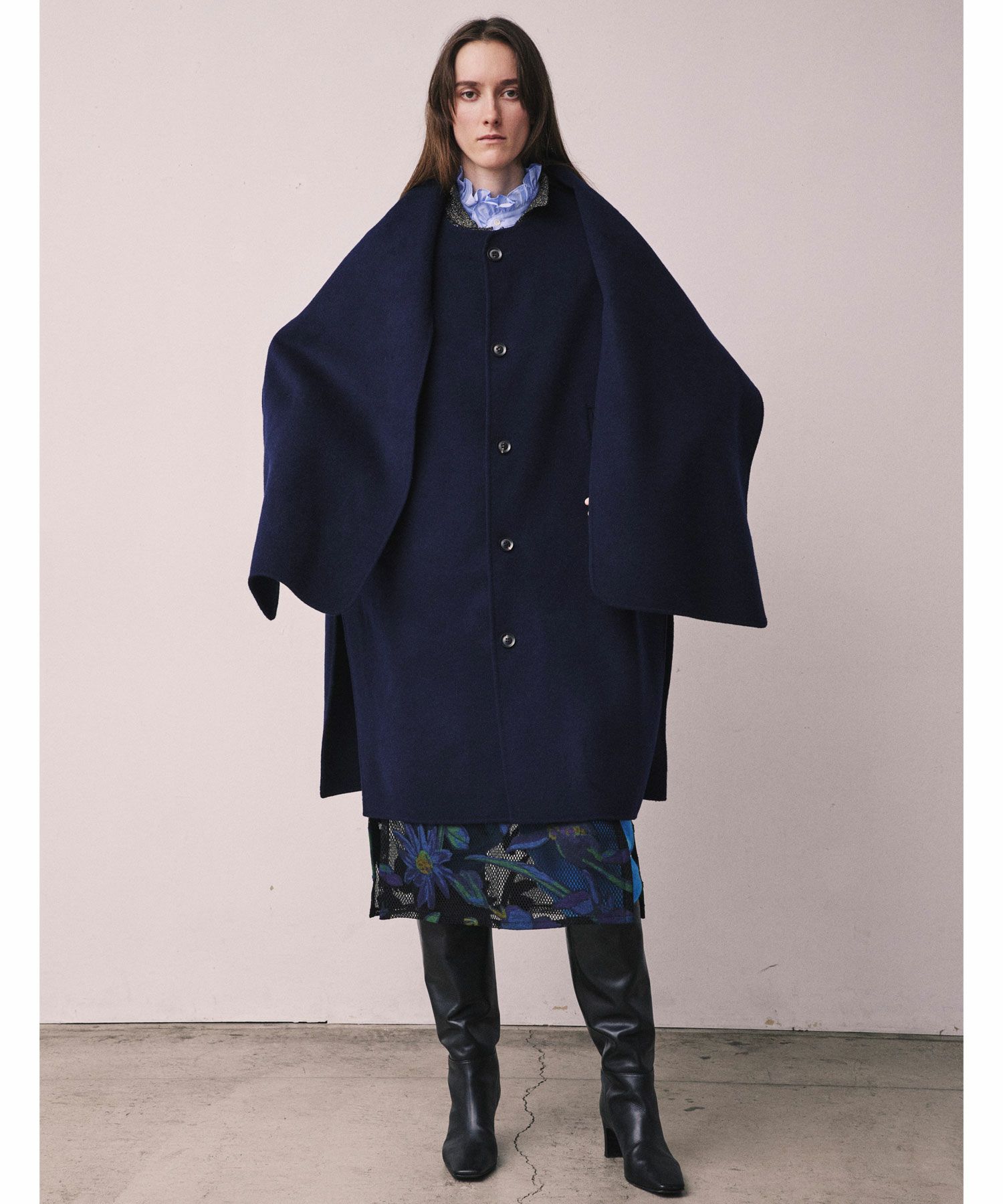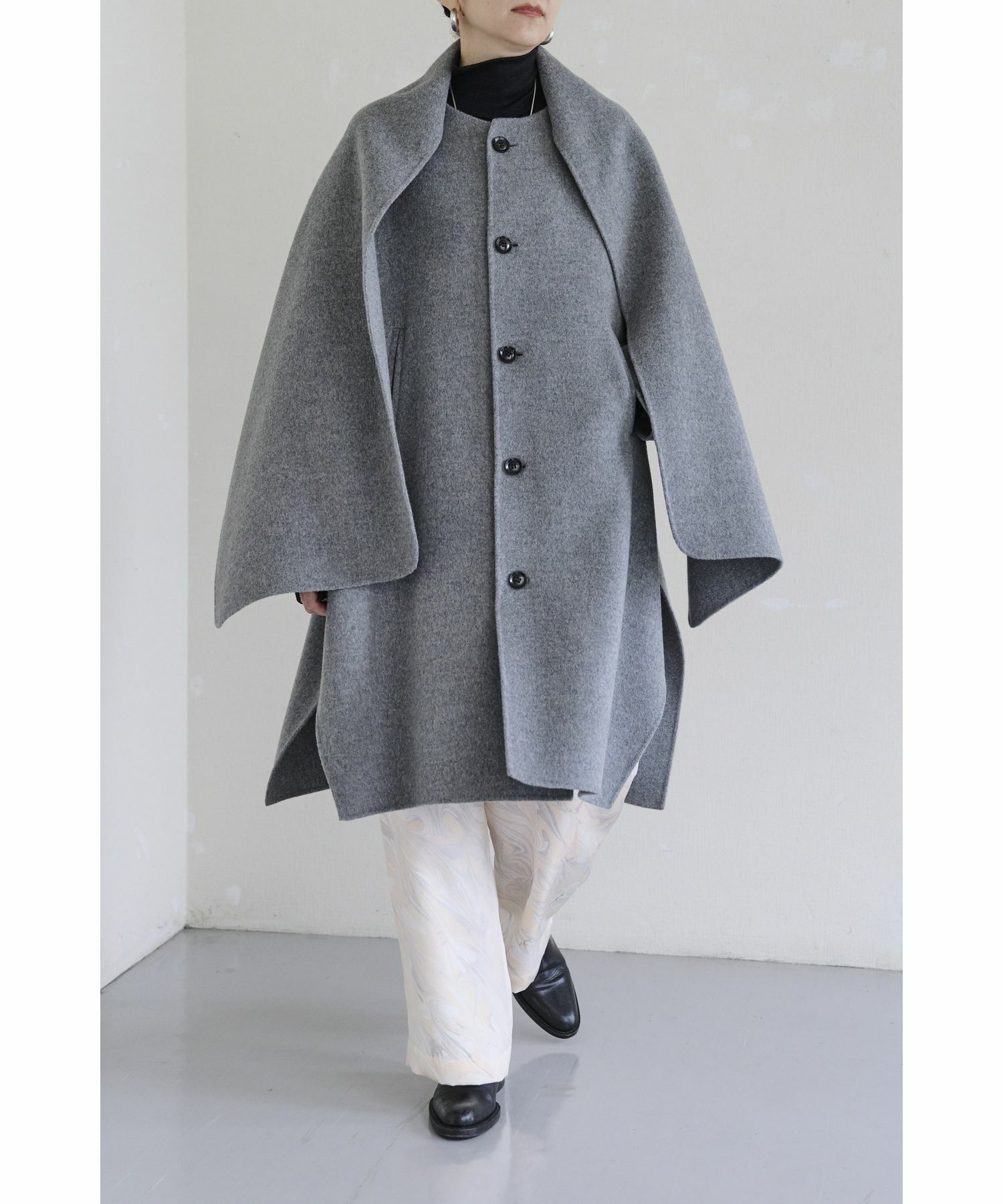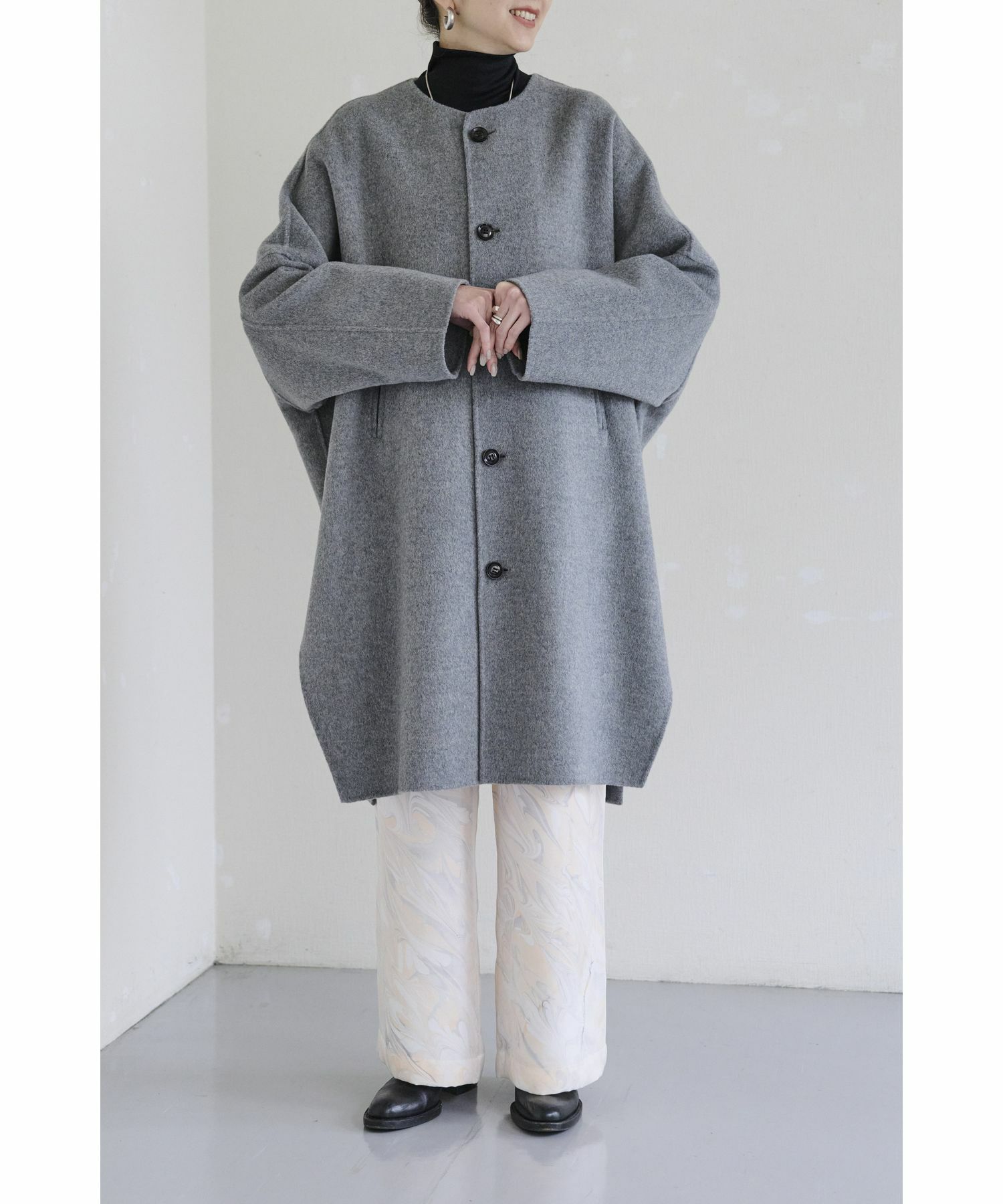 デザイナー:深山拓也(みやまたくや)/上島朋子(かみじまともこ)2000年に創立された日本のブランド。ベーシック×デザイナーズをベースとして、上質な素材とハンドクラフトテクニックを用い、新しいバランスやシルエットの中に、美しさと強さを持った服作りを目指している。近年では、ビジネスシーンにおける自己表現が出来るアイテム、日常生活で着用出来るクリエーションを提案している。