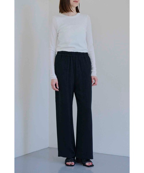 【素材】和歌山産の「強燃コットン テレコ」を使用。 高級超長綿スーピマ原料の強燃糸を用い、ふんわり柔らかく編み上げたテレコ素材です。 強撚糸ならではのサラッとした肌触りで、肌離れが良く快適な着心地。さらに後加工で柔らかさをプラスし、ふんわりとした風合いに仕上げています。 細ピッチのテレコ編みが繊細で上品な表情を生み、着るほどに心地よさを実感できる素材です。