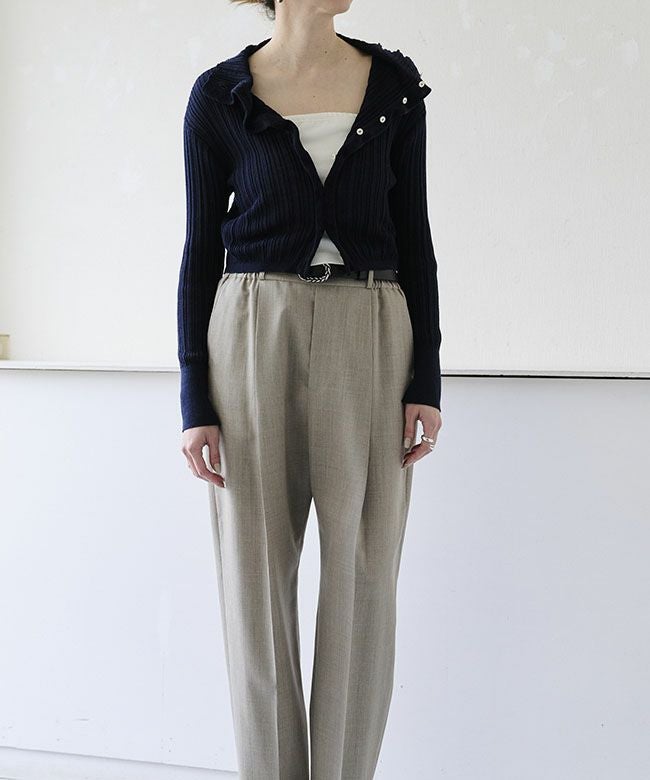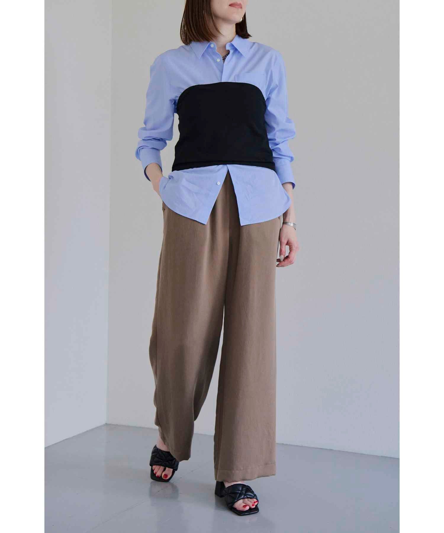 デザイナー:深山拓也(みやまたくや)/上島朋子(かみじまともこ)2000年に創立された日本のブランド。ベーシック×モードをベースとして、上質な素材とハンドクラフトテクニックを用い、新しいバランスやシルエットの中に、美しさと強さを持った服作りを目指している。近年では、ビジネスシーンにおける自己表現が出来るアイテム、日常生活で着用出来るクリエーションを提案している。
