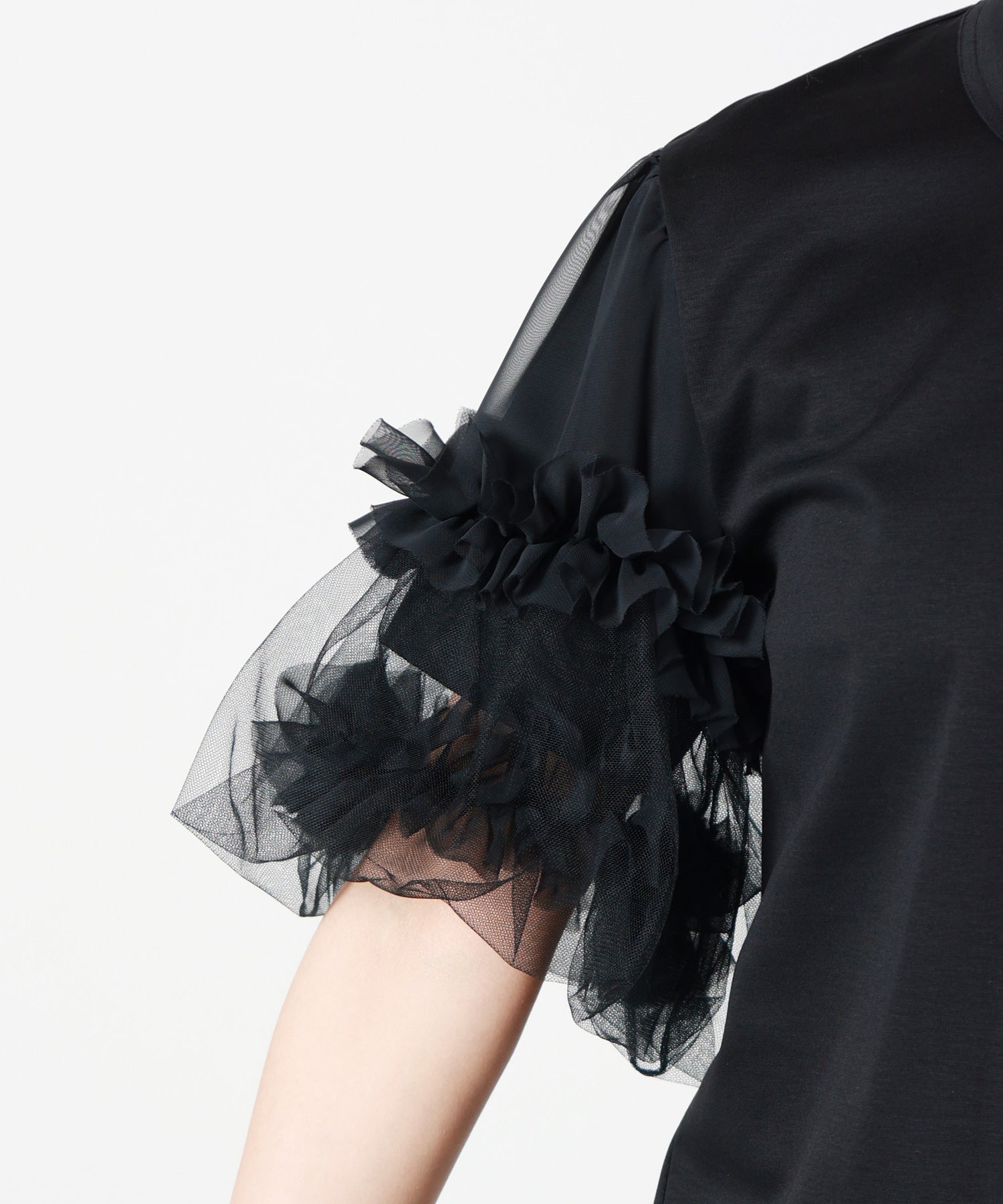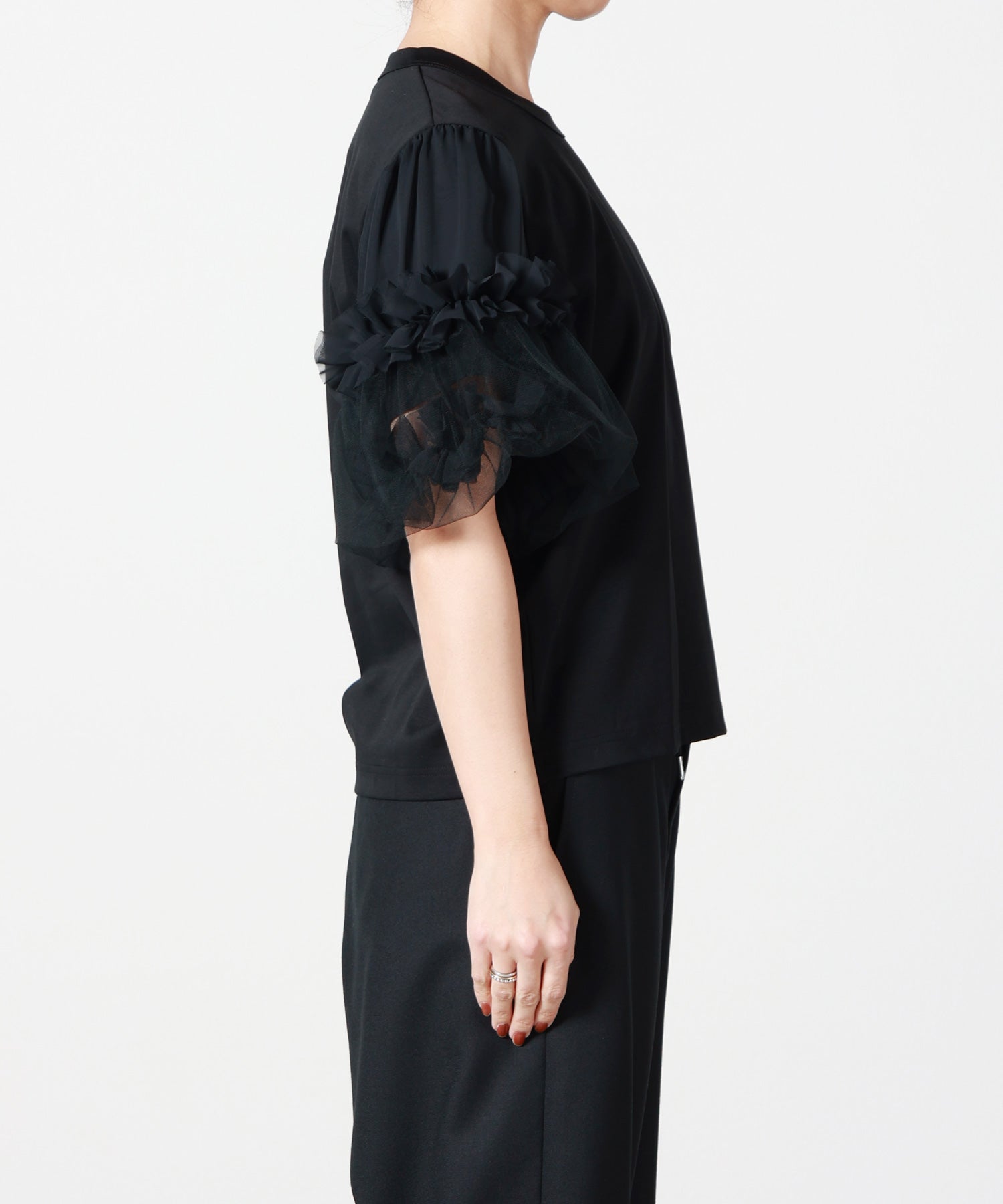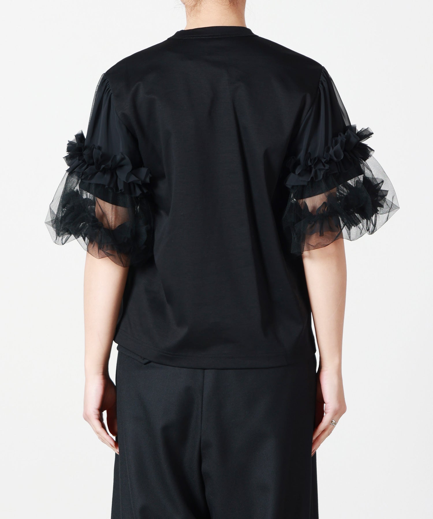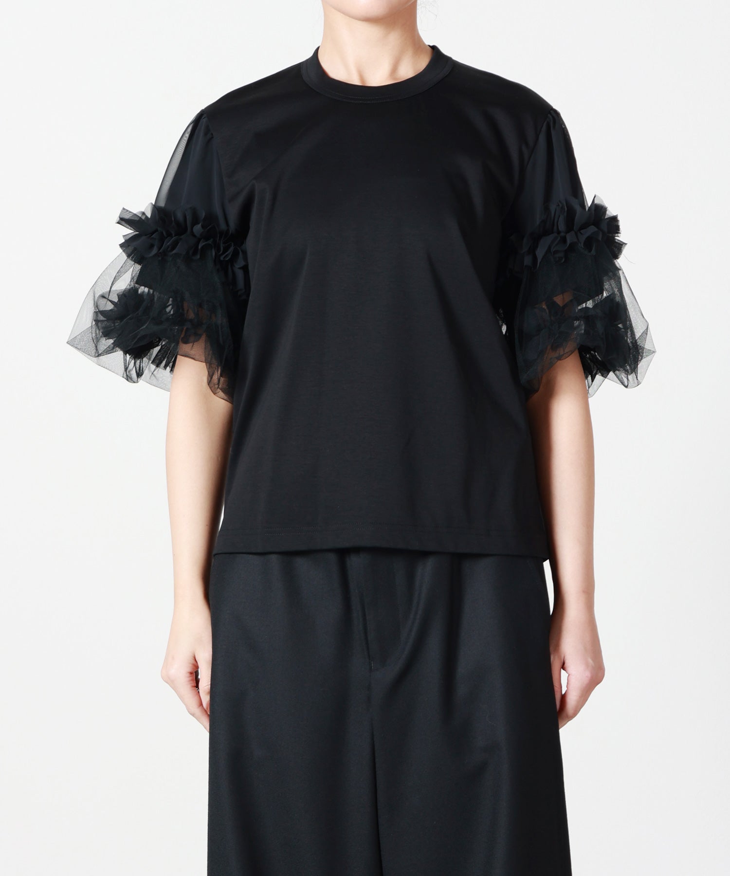 【noir kei ninomiya(ノワールケイニノミヤ)】 綿ポンチ×ナイロンチュールTシャツ