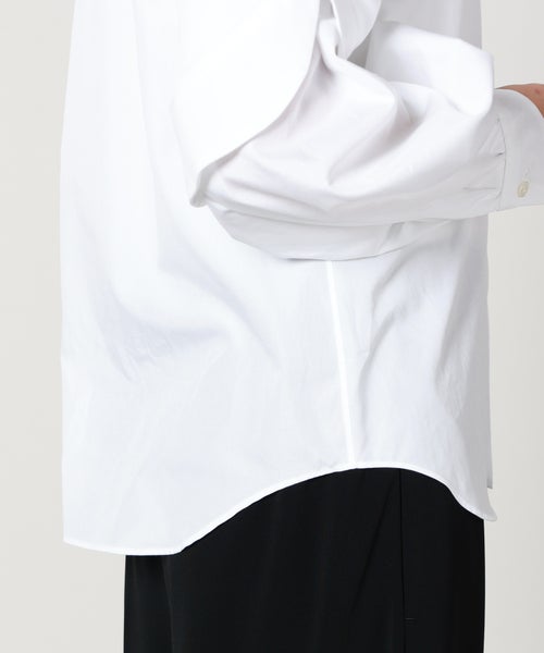 【素材】綿100%を使用し、程よいハリ感とさらりとした肌触りを実感いただけます。シャツらしいきちんと感を保ちながらも肌当たりはやわらかいため、長時間の着用でもストレスを感じにくい素材感です。