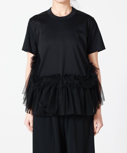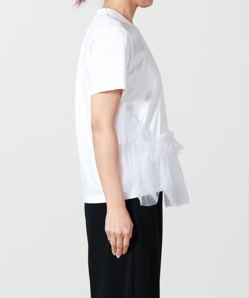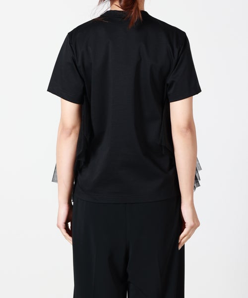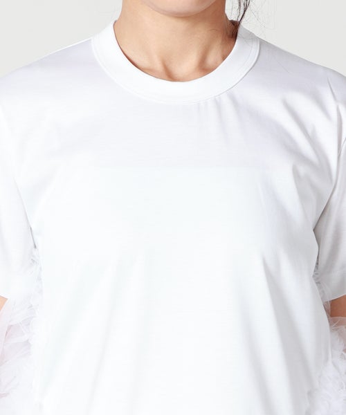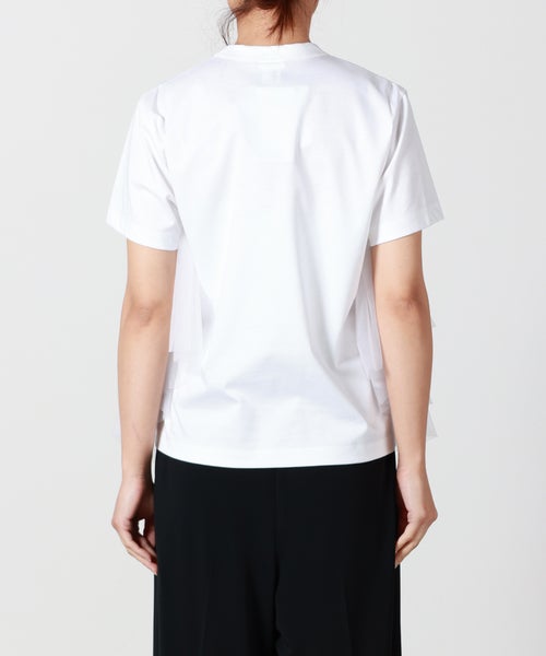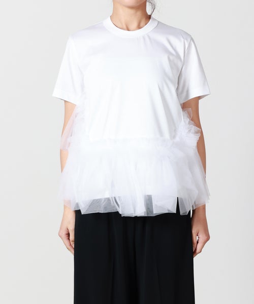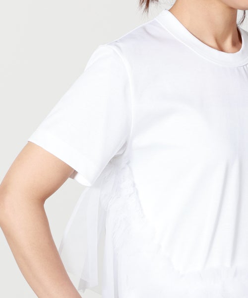 【noir kei ninomiya(ノワールケイニノミヤ)】 綿ポンチ×ナイロンチュールTシャツ