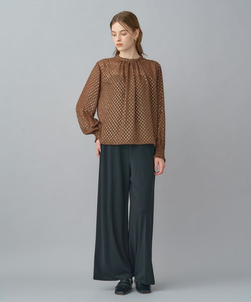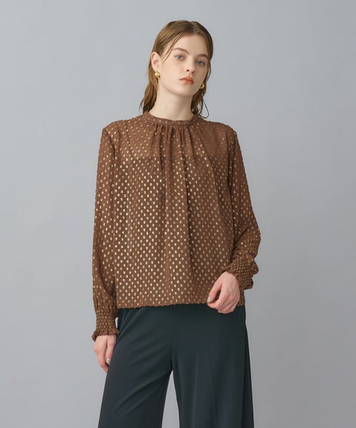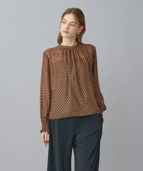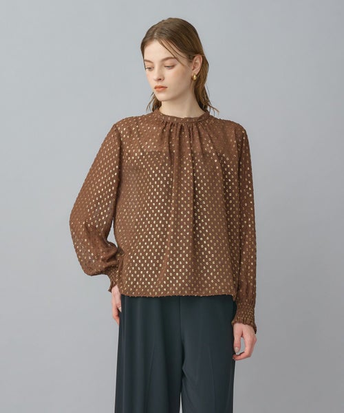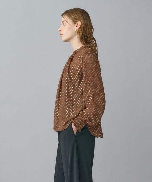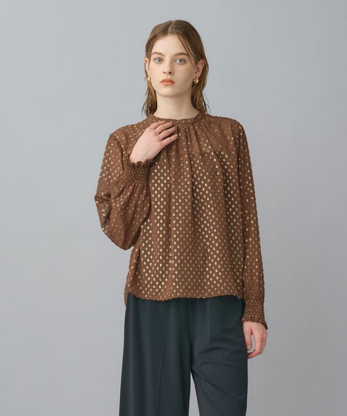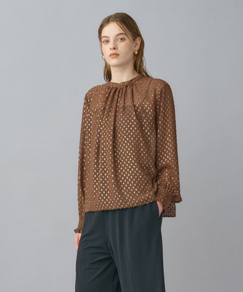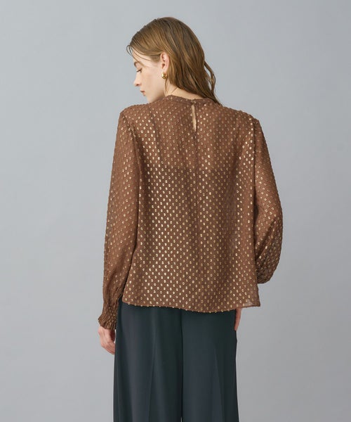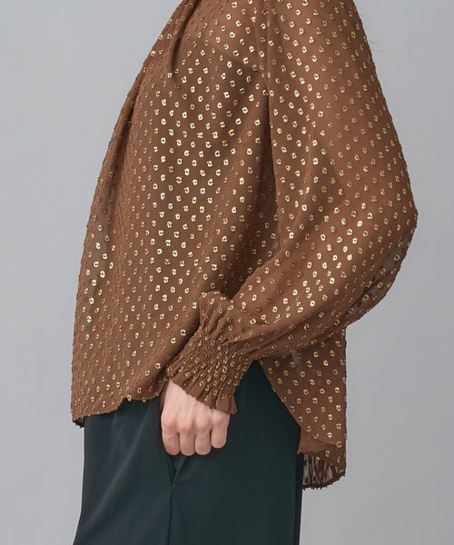 ゴールドリーフが煌めく上品ジャガードブラウス