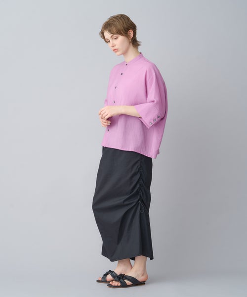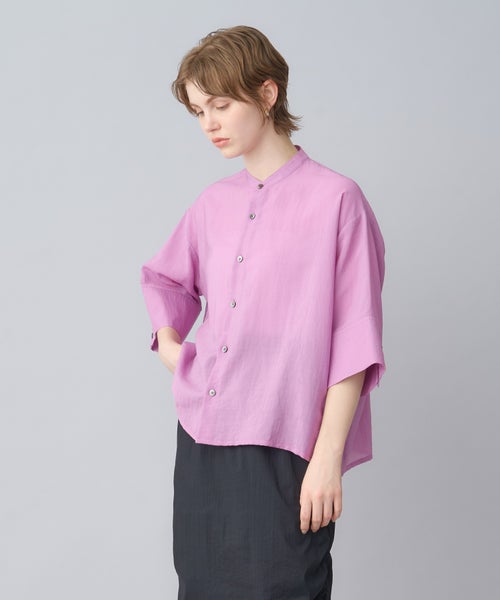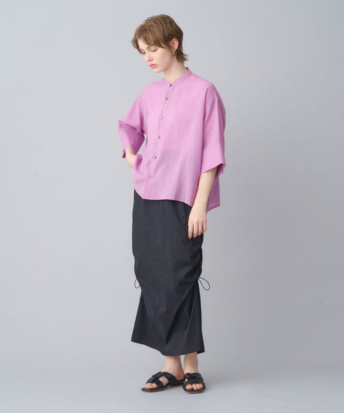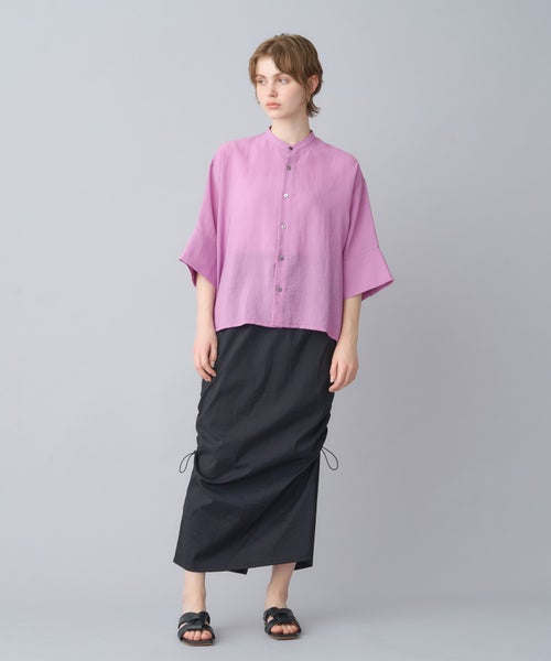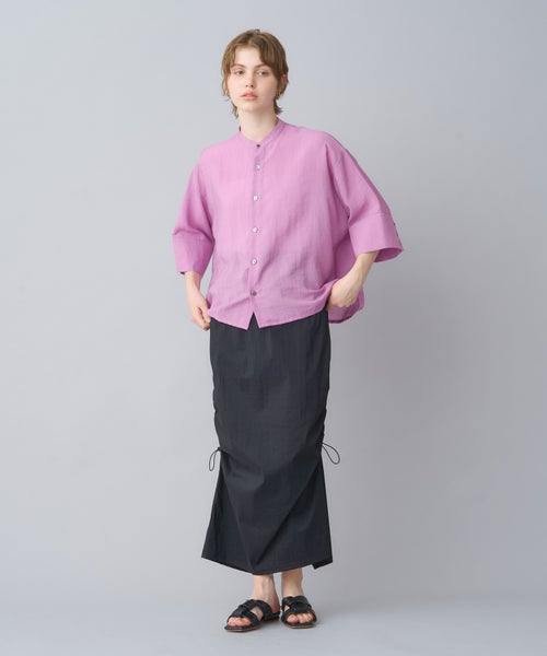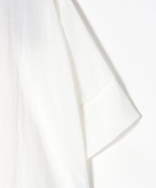 【デザイン】PARIGOT(パリゴ)のシャツ。オーバーサイズでゆったりとしたシルエットが特徴的な半袖シャツ。テント型のデザインがエフォートレスなムードを醸し出し、リラックスした着心地を提供します。袖口のボタンとカフスが程よいアクセントとなり、シンプルながらもスタイリッシュな印象を与えます。フロントを開けて羽織りとしても使えるため、着回し力が高く、シーズンを通して重宝するアイテムです。ひじが隠れるくらいの袖丈が体型をカバーし、気になる部分をさりげなくフォローします。
