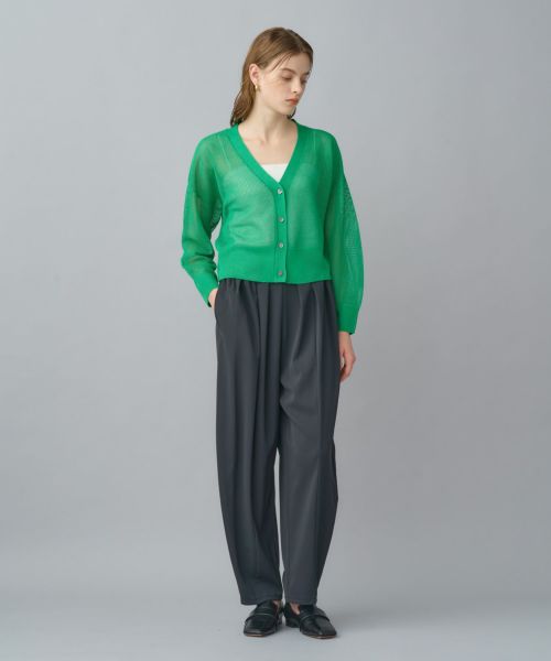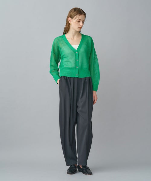 コンパクトなクロップド丈で、程よい透け感が抜け感とセンシュアルな雰囲気を演出。フロントボタンを留めてプルオーバー風にも着られる2WAY仕様で、着こなしの幅が広がります。