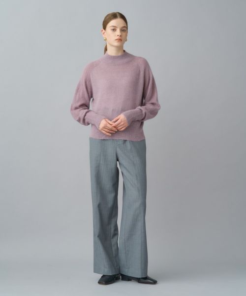ふんわりとした毛足と柔らかな光沢が魅力のハイネックニット。ゆったりとしたラグランスリーブがリラックス感を演出しつつ、コンパクトな着丈でボトムを選ばない万能さも兼ね備えています。