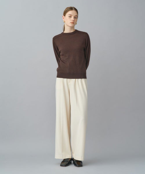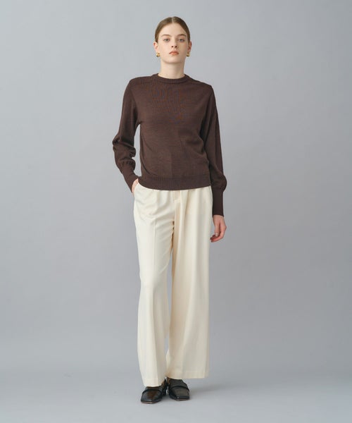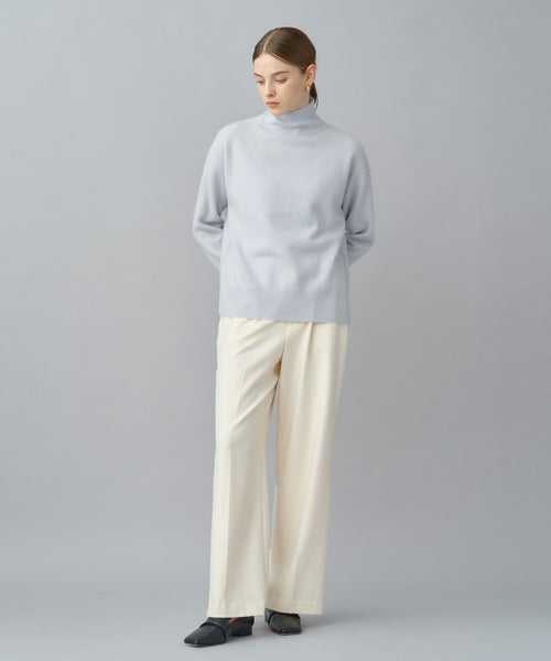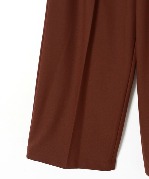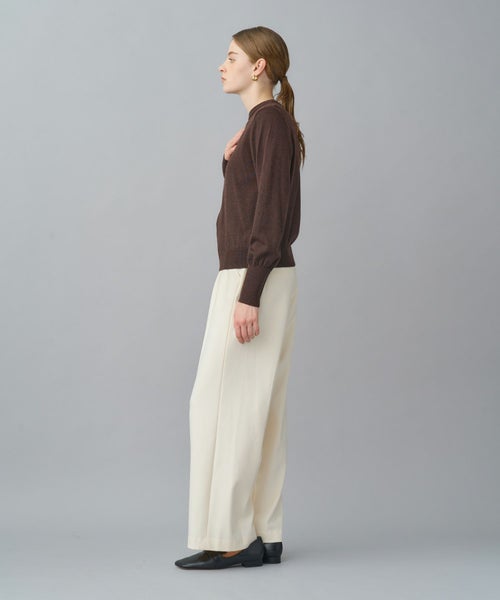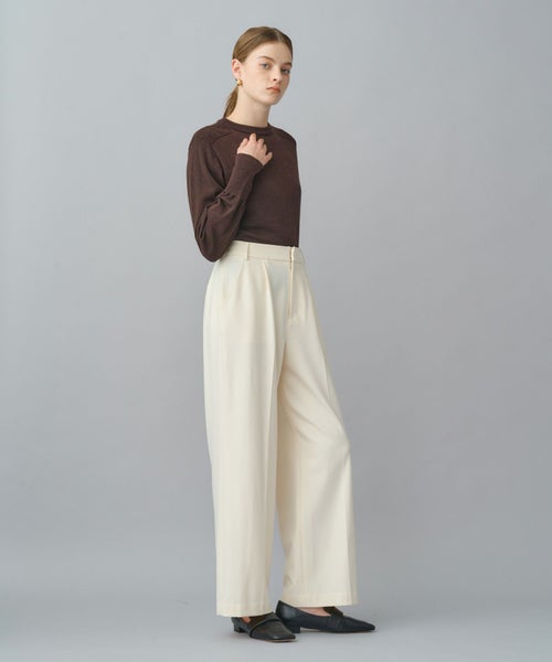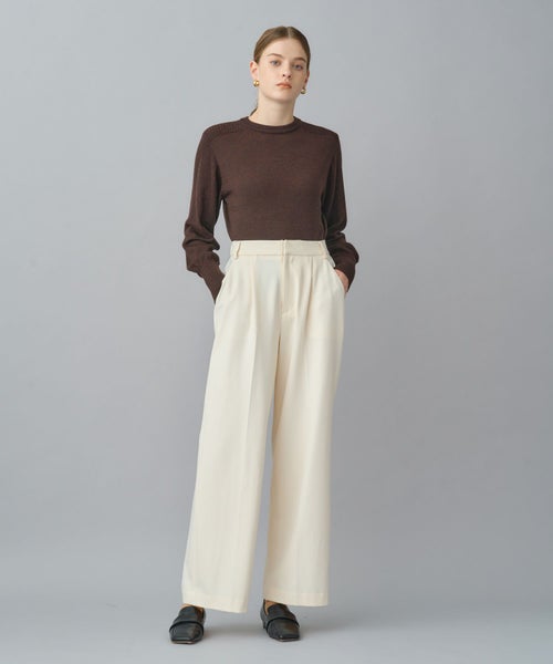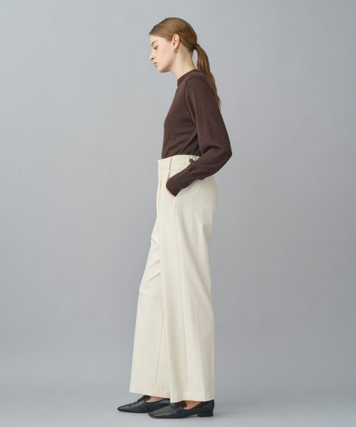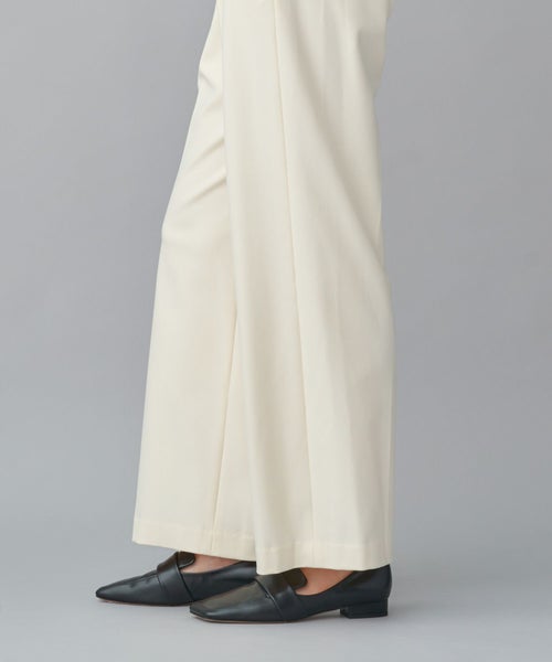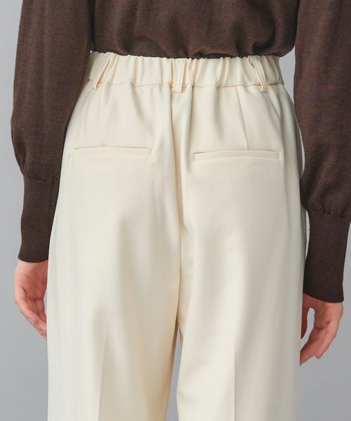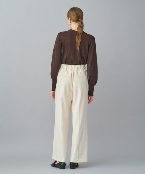 すっきりとしたセミワイドシルエットで、きちんと感と動きやすさを両立。太すぎず細すぎない絶妙なラインにセンタープレスを施し、脚をまっすぐ美しく見せる設計です。ウエストはセンターバックのみゴム仕様で、見た目のきちんと感を損なわず長時間の着用でも快適。オフィススタイルから日常のカジュアルまで幅広く対応します。