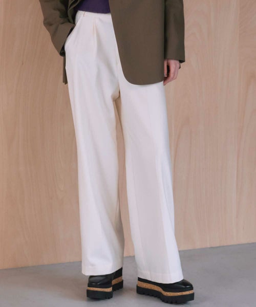 計算されたセミワイドシルエットは、オフィススタイルでもカジュアルスタイルでも美しく映えます。シンプルなデザインでトップスを選ばず、着回し力抜群の一本です。
