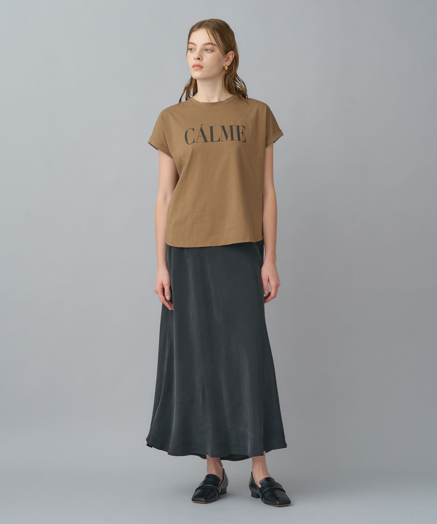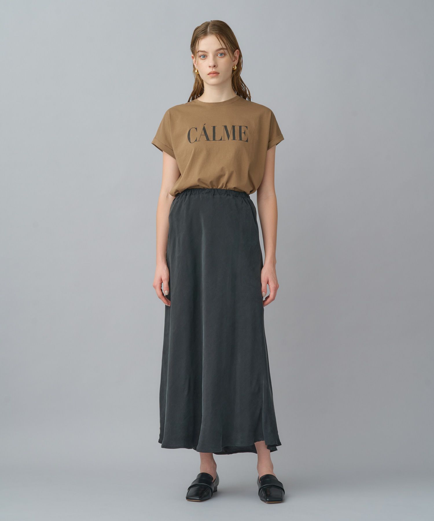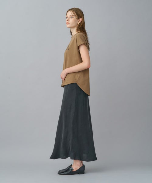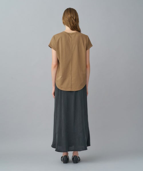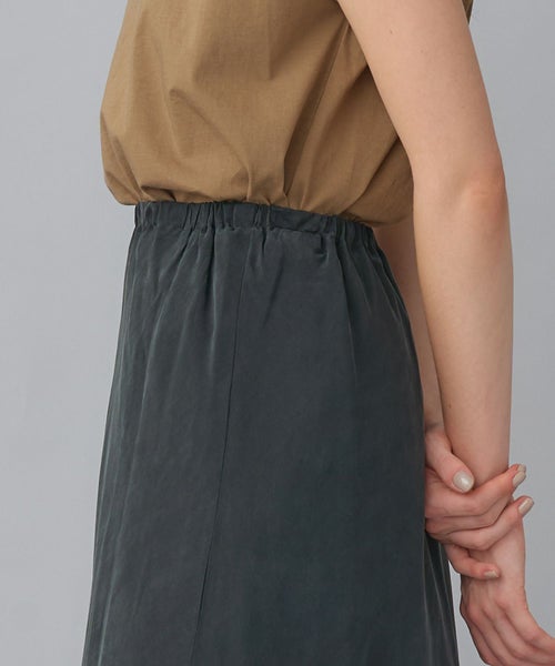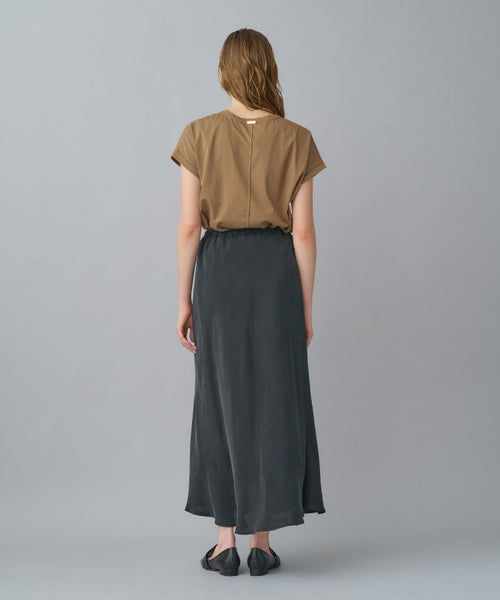 環境に配慮したキュプラ100%を使用。とろみのある素材感ながらも、身体のラインを拾いすぎず、自然な張り感で美しいシルエットをキープします。地球にも優しい一枚です。