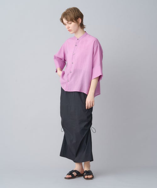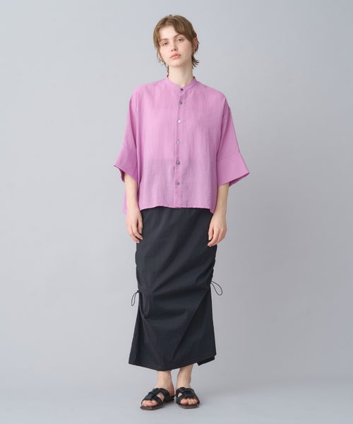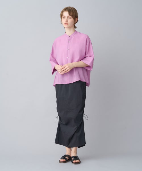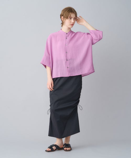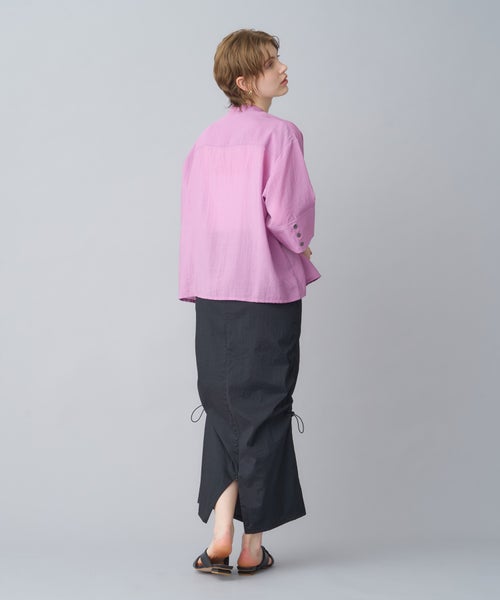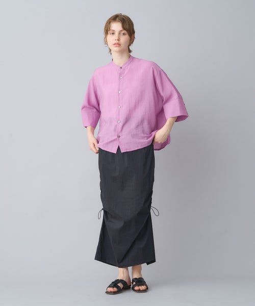 【素材】 ナイロンにポリウレタンが混紡されており、薄手でストレッチ性のある素材を使用。ナイロンやトレンドのドロスト使いでスポーティーさを取り入れており、スタイリングへ程よいカジュアルさやモード感をプラスしてくれます。