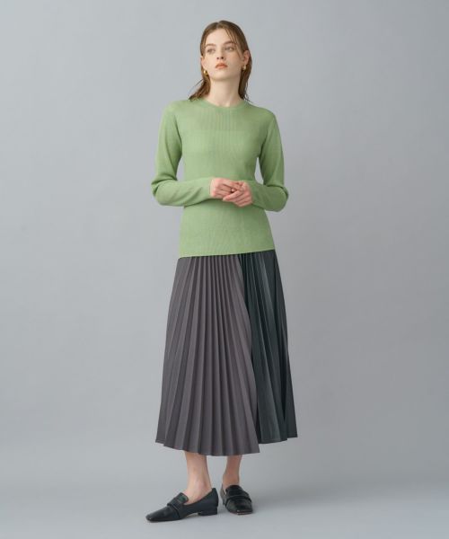 シンプルなボトムスやスカート、ジャケットやワンピースのインナーとしても最適。上品な光沢と程よい華やかさで、装いをワンランク引き上げてくれる万能なクルーネックニットです。