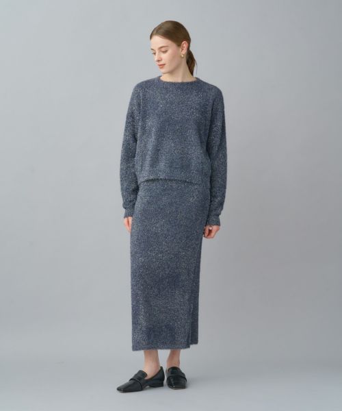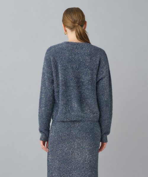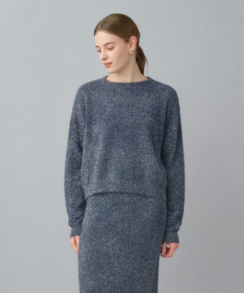 きらめくラメ糸とふんわりとしたフェザーの質感をミックスした、華やかさたっぷりのニット。軽やかなタッチと立体感のある表情が、シンプルなスタイルにもトレンド感をプラスしてくれます。
