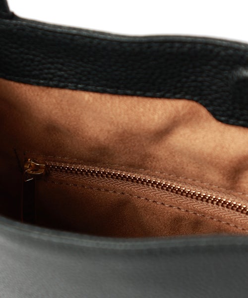 【素材】柔らかいイタリアンレザーを採用し、しっとりとした肌触りと上品で味のあるシボが特徴的で、柔らかくしなやかな風合いです。内装はマイクロライトスエードを使用しているため手を入れた際も肌触りが良く、素材感から上質さを感じられるのも魅力です。
